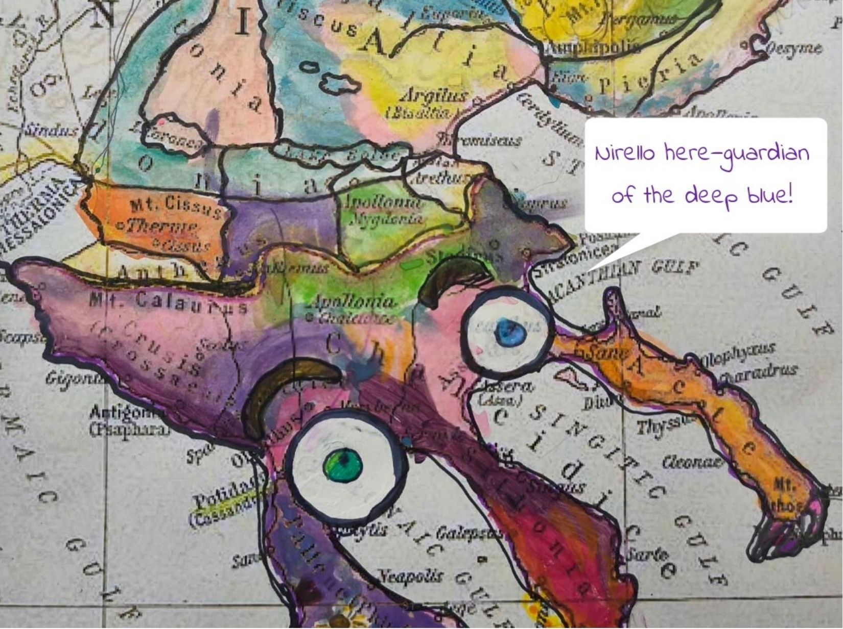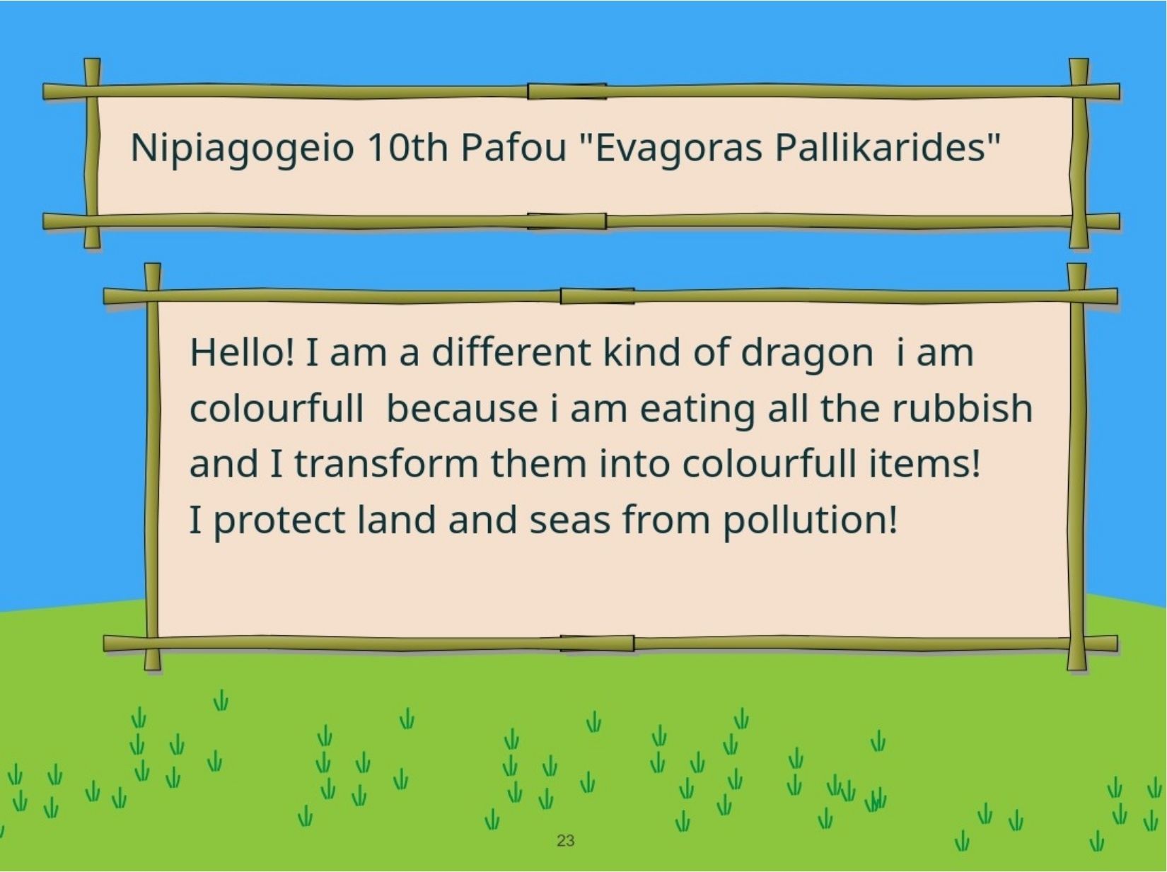 Μέσα στα πλαίσια της διασχολικής αυτής συνεργασίας, οι μαθητές μεταφόρτωσαν τον χάρτη της περιοχής Χλώρακας σε ένα μυθικό Πλάσμα-Φύλακα που θα προστατεύει το περιβάλλον και θα αντιμετωπίζει σύγχρονες οικολογικές απειλές!