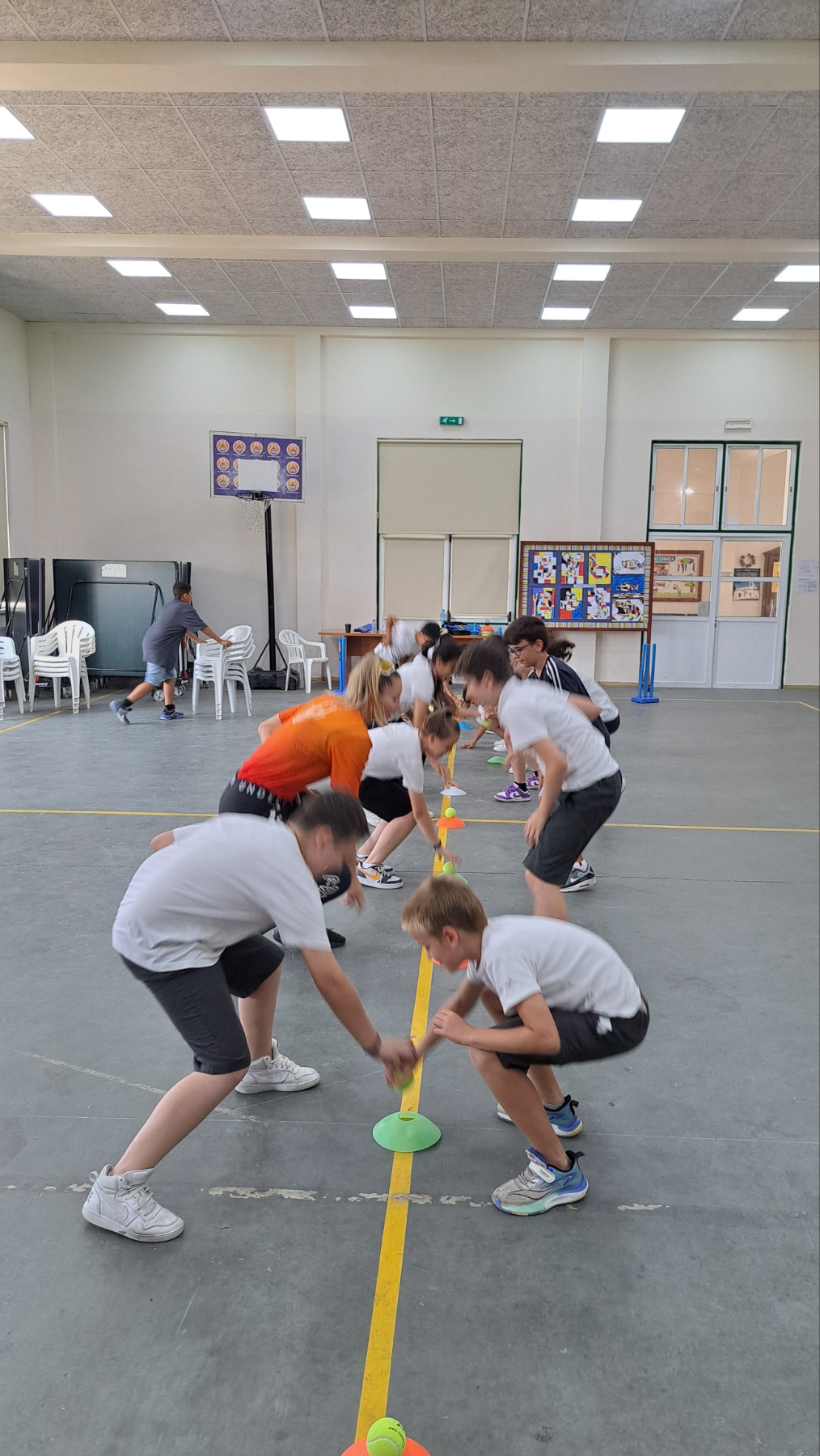 Στις 22.5.25 οι Ε' τάξεις του σχολείου μας συμμετείχαν στο Εκπαιδευτικό πρόγραμμα «Ολυμπιακά Αθλήματα» στο Αθλητικό κέντρο Αφροδίτη. Οι μαθητές είχαν την ευκαιρία να έρθουν σε επαφή με ολυμπιακά αθλήματα όπως η καλαθόσφαιρα, η χειροσφαίριση, η πετόσφαιρα, η άρση βαρών, το καράτε, η ολυμπιακή και η ρυθμική γυμναστική.