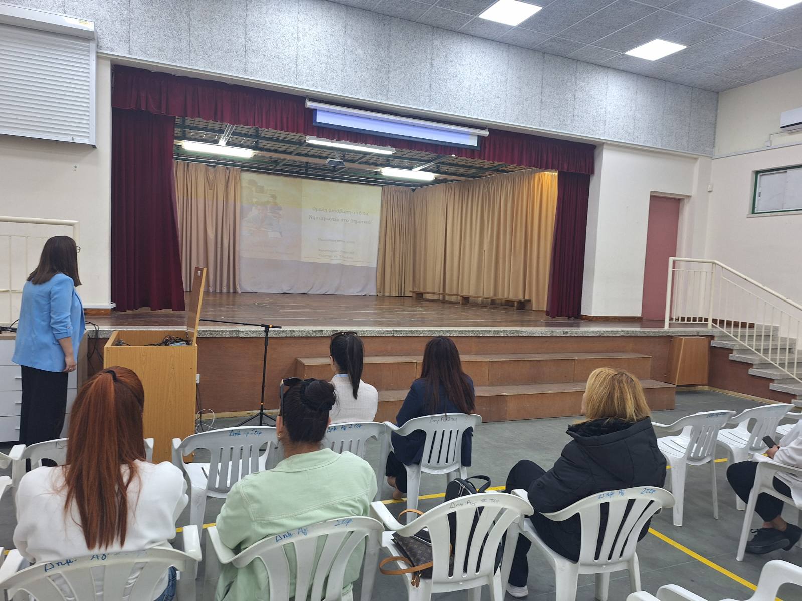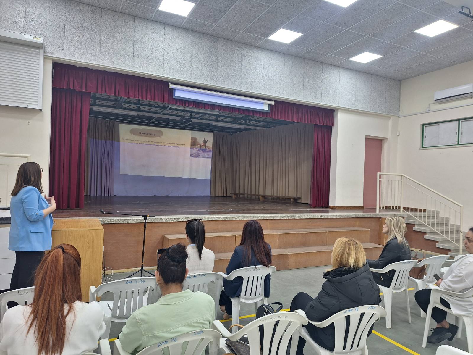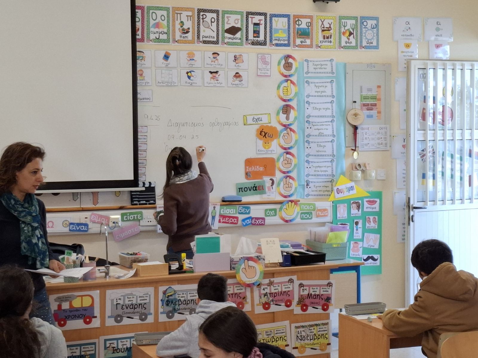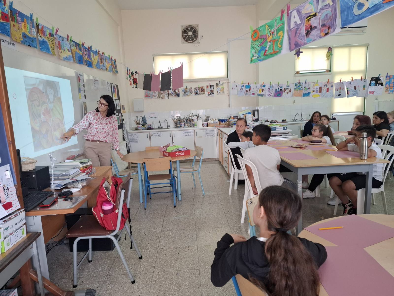 Στις 25/2/25 η εκπαιδευτικός του σχολείου μας κα Αφροδίτη Ντζιόρου παρουσίασε δειγματικό μάθημα ελληνικής ως δεύτερης γλώσσας σε μαθητές μεταναστευτικής βιογραφίας της Α' τάξης του σχολείου μας. Το μάθημα οργανώθηκε συνεργασία με τον ΕΔΕ του σχολείου μας κ. Χριστάκη Δημητρίου και τη λειτουργό του Παιδαγωγικού Ινστιτούτου κα Χρυσάνθη Κρασιά. Το μάθημα παρακολούθησαν εκπαιδευτικοί σχολείων της πόλης και επαρχίας Πάφου.