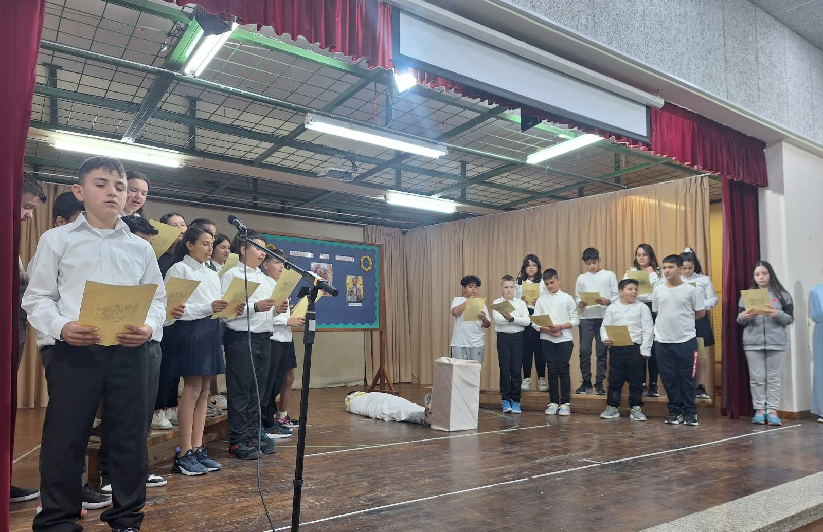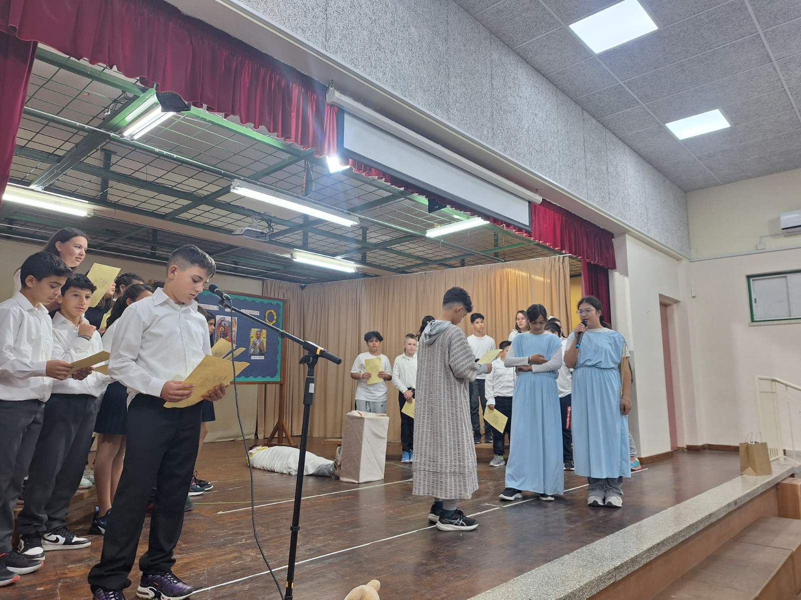 30.9.24. Η μέρα άρχισε με την έπαρση των σημαιών και ακολούθως σε μια σεμνή και συγκινητική εκδήλωση τα παιδιά της Ε'2 παρουσίασαν το χρονικό της επετείου μέσα από επετειακά κείμενα, ποιήματα και τραγούδια.