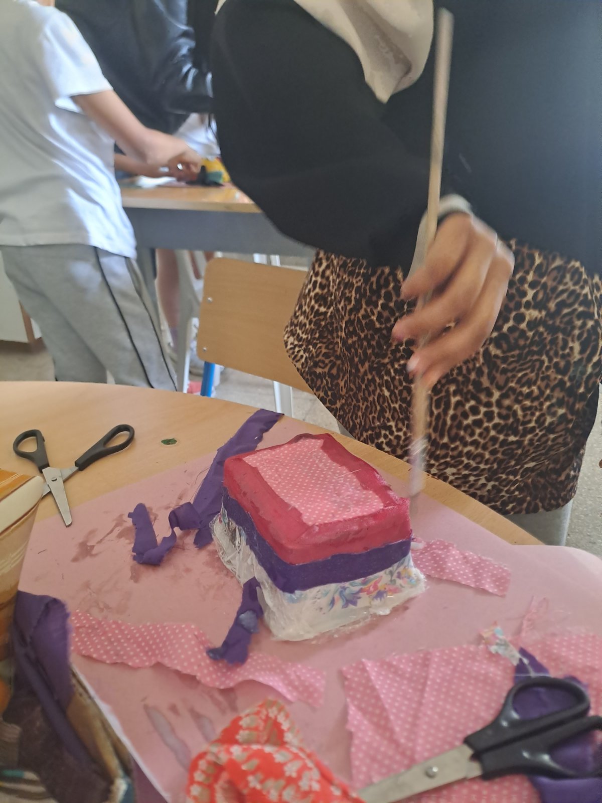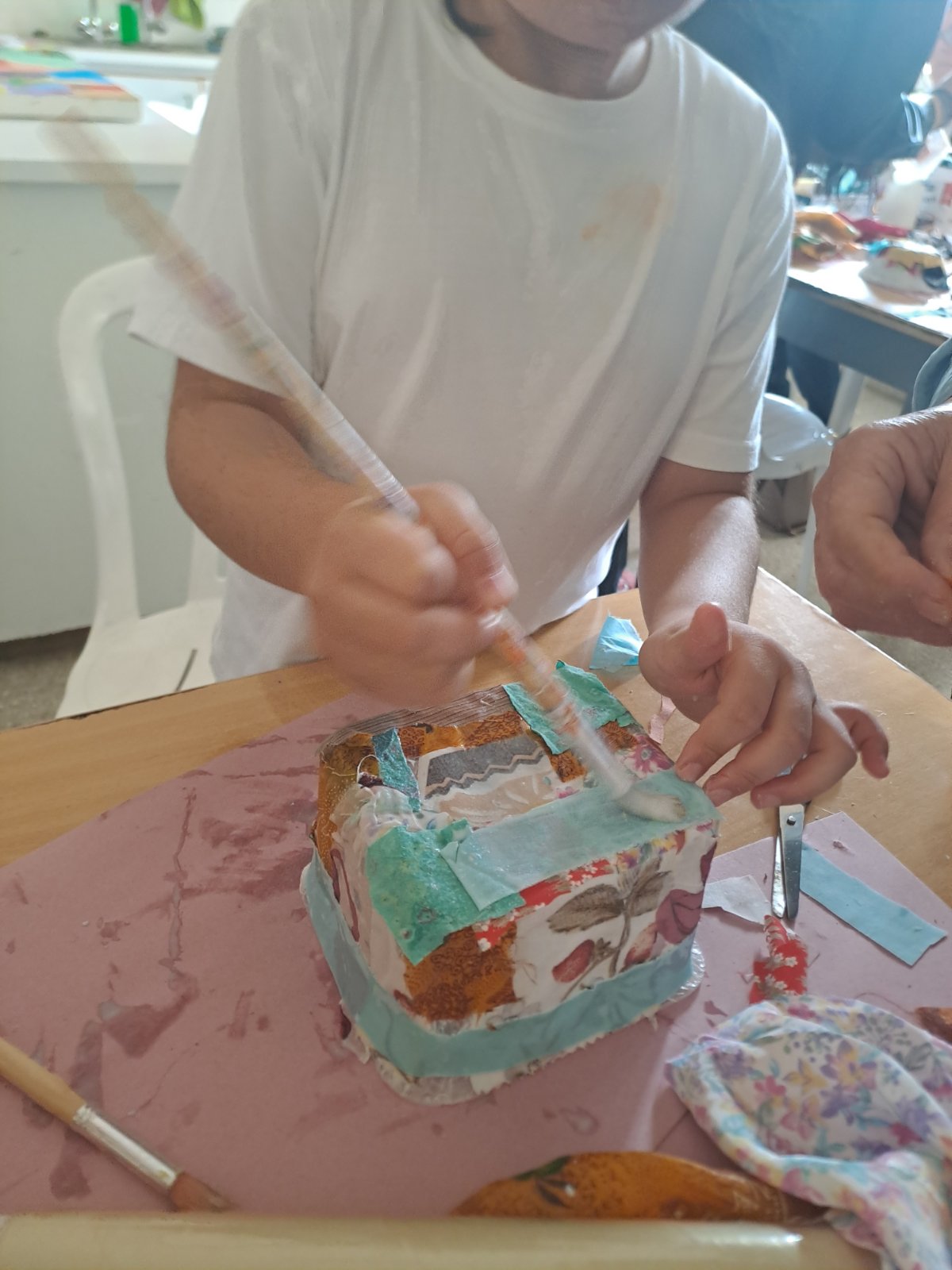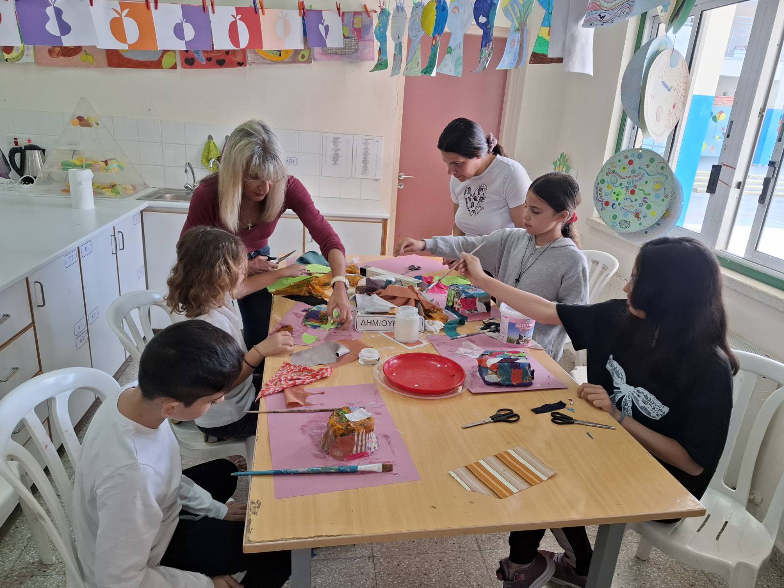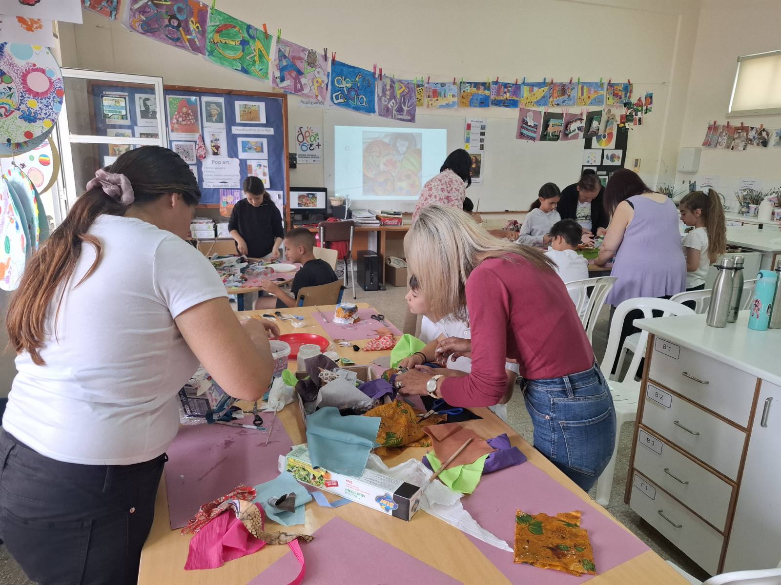Στο πλαίσιο του μαθήματος της Τέχνης, στις 30/4/25 οι μαθητές της Γ΄2 και στις 8/5/25 οι μαθητές του Γ'1 είχαν την ευκαιρία να δημιουργήσουν μαζί με τις γιαγιάδες τους υφασμάτινα καλαθάκια, σε μια ζεστή και συγκινητική δράση που ένωσε τις γενιές μέσα από τη δημιουργία και την έννοια της επαναχρησιμοποίησης. Με λογής λογής υφάσματα και πολύ μεράκι, μικροί και μεγάλοι συνεργάστηκαν, αντάλλαξαν ιδέες και τεχνικές, ενώ μοιράστηκαν όμορφες στιγμές και ιστορίες. Η δράση αυτή δεν είχε μόνο καλλιτεχνικό χαρακτήρα, αλλά και βαθιά συναισθηματική αξία, αφού ανέδειξε τη δύναμη της συνεργασίας και της αγάπης ανάμεσα στις γενιές.
