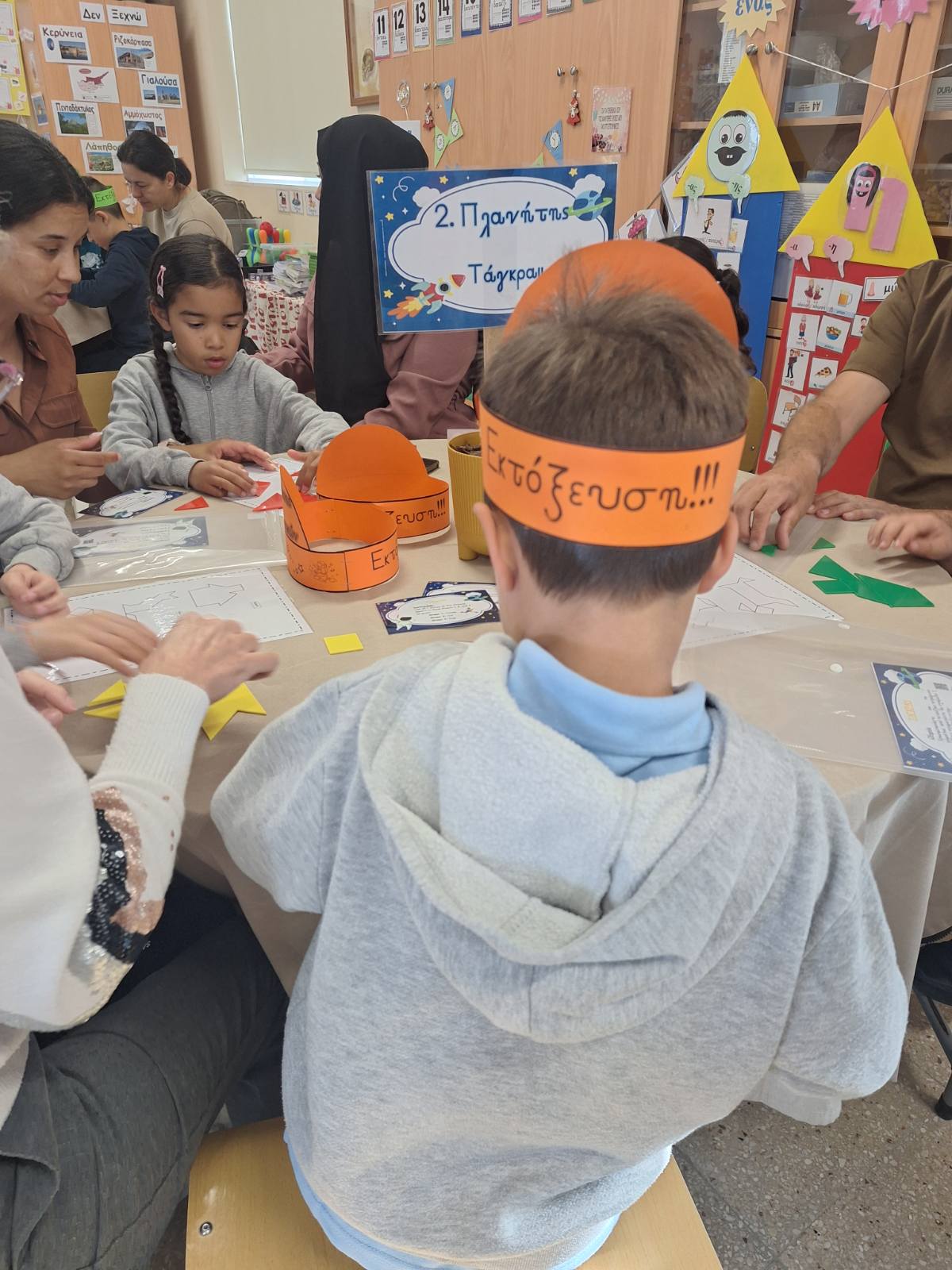 Στις 3.4.25 οι τάξεις Α1 και Α2 συμμετείχαν στο πρόγραμμα "Γονείς και παιδιά στο ίδιο θρανίο" με θέμα τα Μαθηματικά. Γονείς και παιδιά συμμετείχαν σε δραστηριότητες που περιλάμβαναν διαφορετικές αναπαραστάσεις, έννοιες και διαδικασίες των μαθηματικών μέσα από την παιγνιώδη θεματολογία "πλανήτες και διάστημα¨". Θερμές ευχαριστίες στον σύμβουλο μαθηματικών της επαρχίας Πάφου, κ. Σέργιο Σεργίου για τις συμβουλές και την καθοδήγηση.