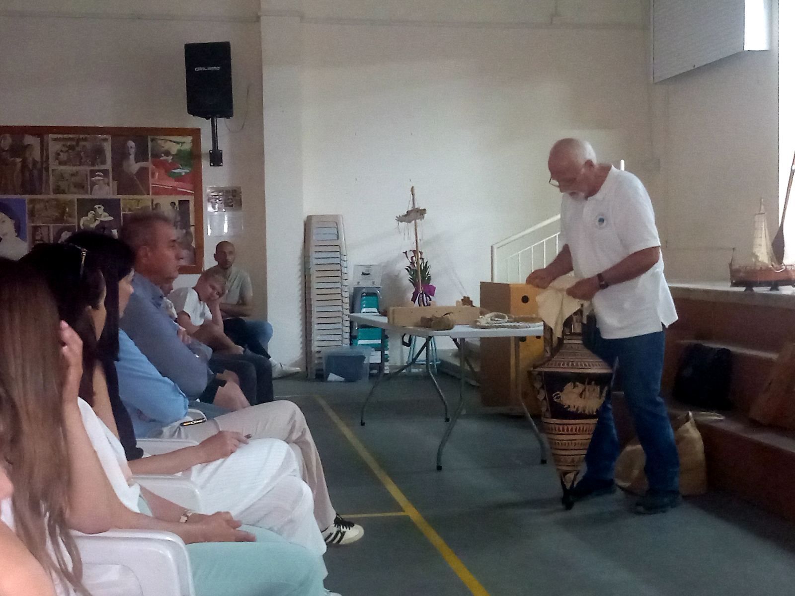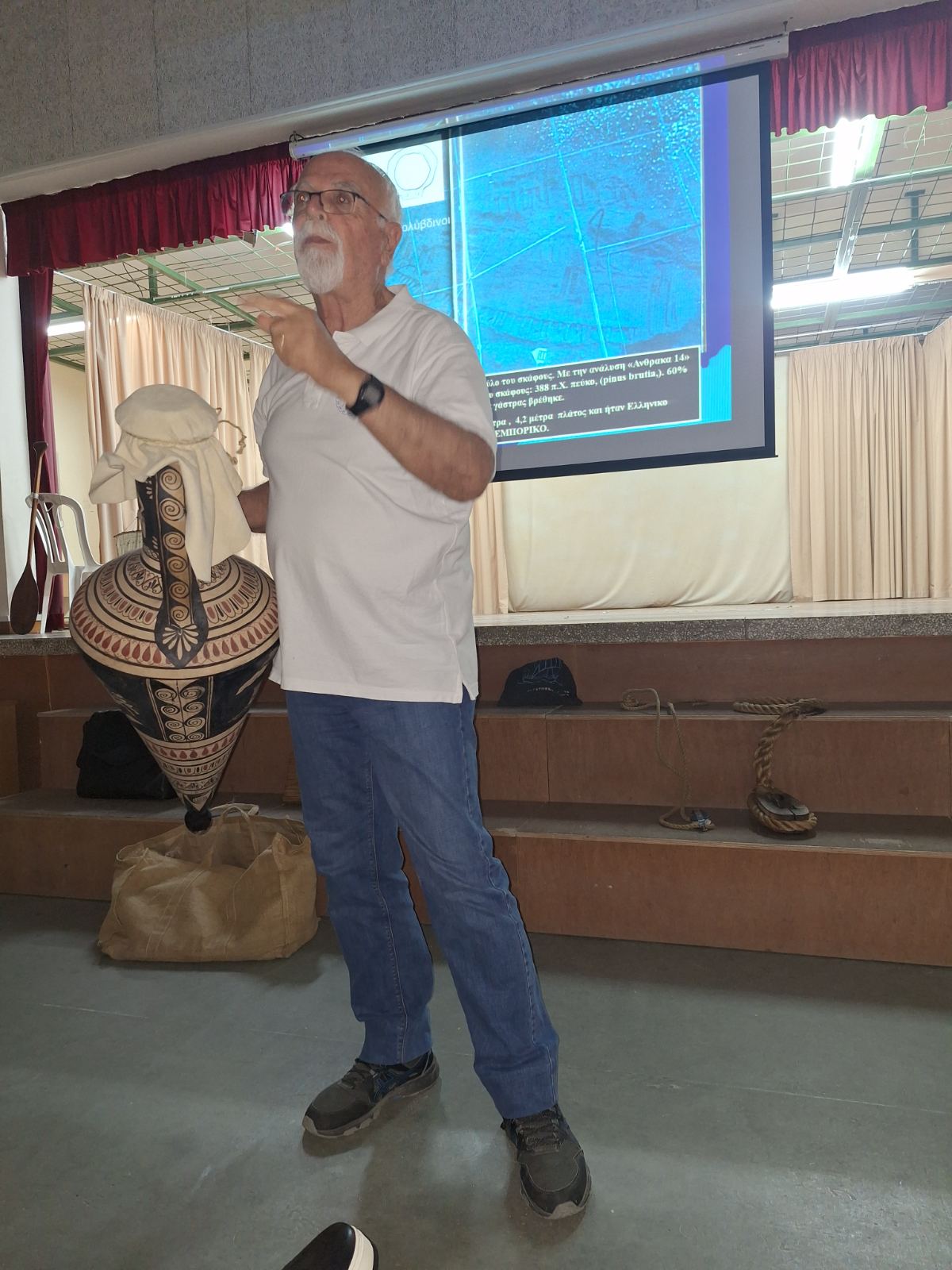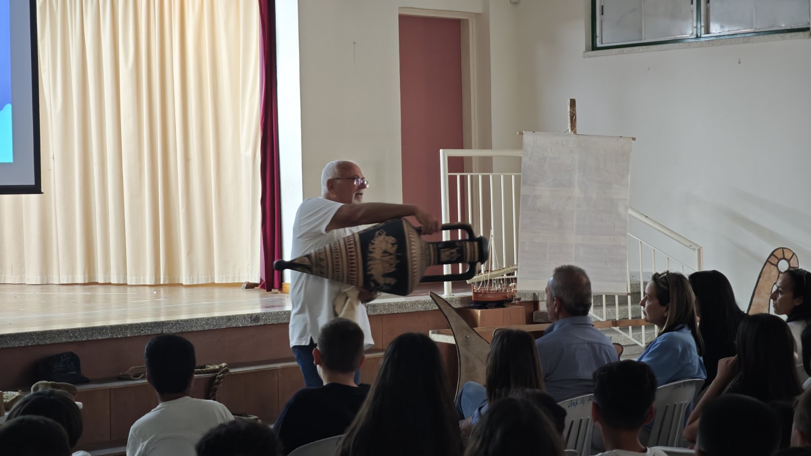 12.5.25. Σήμερα με ιδιαίτερη συγκίνηση υποδεχθήκαμε στο σχολείο μας, στα πλαίσια διασχολικής συνεργασίας με το Δημοτικό Σχολείο Χλώρακα (Αγίου Νικολάου) τον κ. Γλαύκο Καριόλου. Με σεβασμό και συγκίνηση, μοιράστηκε μαζί μας την ιστορία του καραβιού της Κερύνειας — ενός ζωντανού μνημείου του πολιτισμού μας και της καταγωγής μας, που ανασύρθηκε από τα βάθη της θάλασσας και της ιστορίας. Μέσα από την εμπνευσμένη παρουσίασή του, ζωντάνεψε η κατάδυση του πατέρα του, Ανδρέα Καριόλου, εκείνο το πρωινό της 20ης Νοεμβρίου του 1965 όπου ακολουθώντας το σύννεφο λάσπης που άφηνε πίσω η άγκυρα του σπογγαλευτικού του σκάφους, έμεινε έκθαμβος μπροστά από ένα αναπάντεχο θέαμα: Το αρχαίο ναυάγιο. Μαζί με τον κ. Γλαύκο Καριόλου και το πολύτιμο υλικό που μοιράστηκε μαζί μας, μικροί και μεγάλοι, ταξιδέψαμε νοερά στα νερά της αρχαίας Μεσογείου και νιώσαμε πιο κοντά από ποτέ τον παλμό της πολιτιστικής μας κληρονομιάς και της κατεχόμενης μας πατρίδας. Η μέρα κορυφώθηκε με τα αποκαλυπτήρια ενός συγκινητικού έργου τέχνης που δημιούργησαν με αγάπη οι μαθητές της Στ' τάξης με την καθοδήγηση της εκπαιδευτικού του σχολείου μας κας Ιουλίας Παναγιώτου Αχεριώτη, αφιερωμένου στην Κερύνεια – ως σύμβολο ελπίδας, μνήμης και προσμονής για επιστροφή.