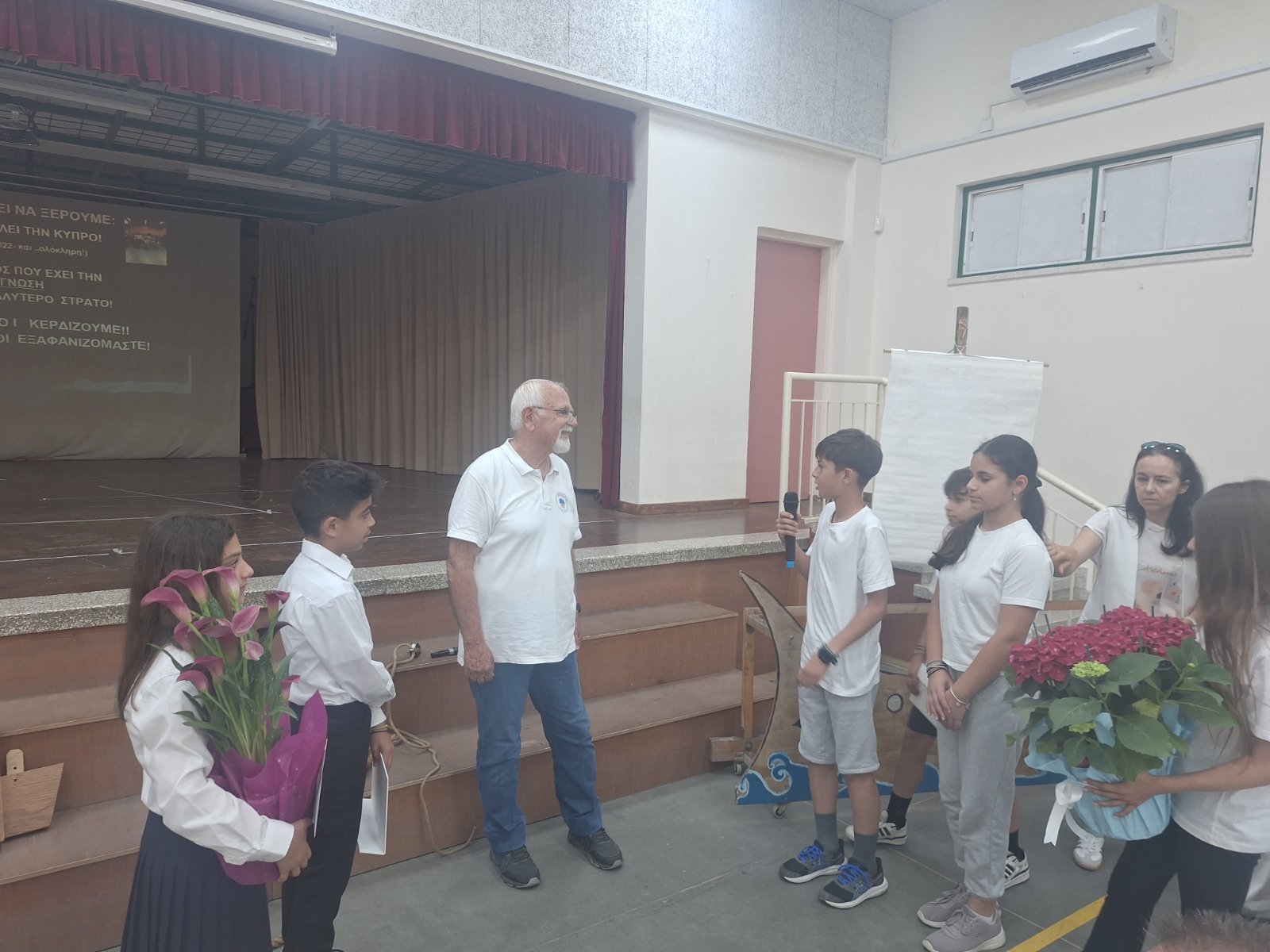 Στις 31/3/25 πραγματοποιήθηκε ο εορτασμός της Εθνικής Επετείου 1ης Απριλίου, 1955. Μέσα από ένα πλούσιο εορταστικό πρόγραμμα που περιλάμβανε μουσική, απαγγελία, θέατρο και αφήγηση οι μαθητές ζωντάνεψαν ξανά τον αγώνα της ΕΟΚΑ, τον αγώνα του κυπριακού λαού για την αποτίναξη του αγγλικού ζυγού και την πολυπόθητη ελευθερία. Επιπλέον, στους μαθητές μίλησε ο εκπαιδευτικός κ. Ζαχαρίας Γεωργίου, αγωνιστής της ΕΟΚΑ στην περιοχή της Κισσόνεργας. Μέσα από τα λόγια και το βιντεοσκοπημένο υλικό ο κ. Ζαχαρίας Γεωργίου μετέφερε στα παιδιά, μέσα σε μια πολύ φορτισμένη ατμόσφαιρα, το δράμα της θυσίας των ηρώων Χρίστου Κκέλη και Μιλτιάδη Στυλιανού, των οποίων υπήρξε φίλος και συναγωνιστής. Τον ευχαριστούμε θερμά.