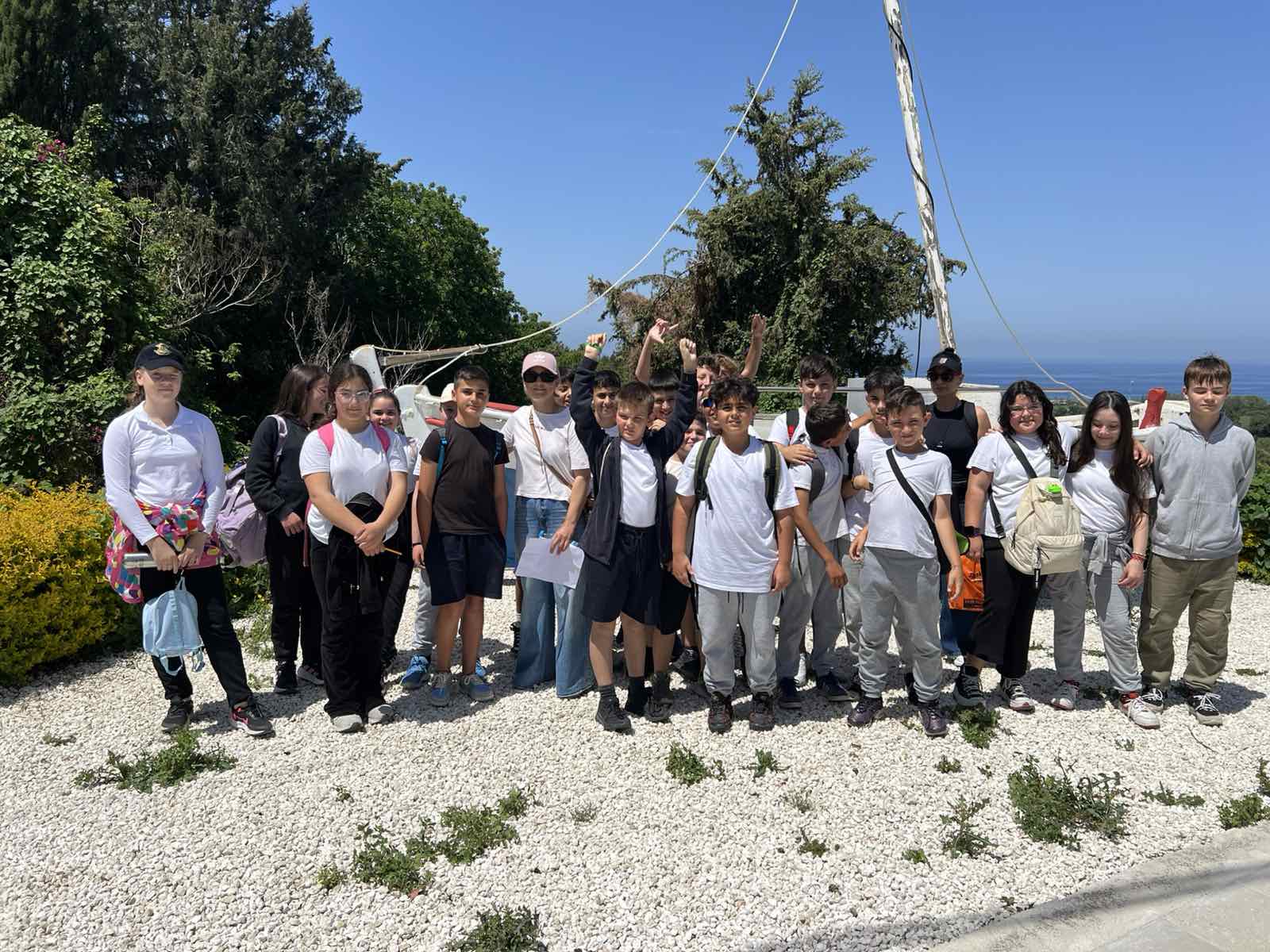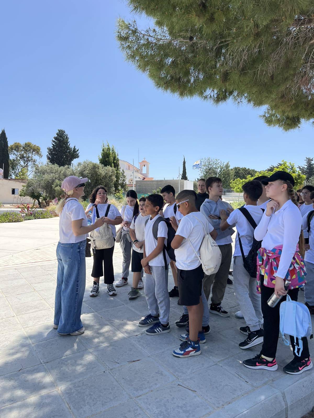 Σε συνέχεια του προγράμματος «Νεαροί Πρεσβευτές Τουρισμού», το οποίο ξεκίνησε στις 27.2.2025 με ομιλία στο σχολείο μας, οι μαθητές της Στ1 και της Στ2 επισκέφθηκαν την Πέμπτη 27.3.2025 το ιερό της θεάς Αφροδίτης και το αρχαιολογικό μουσείο στην Παλαίπαφο, συνοδευόμενοι από τους δασκάλους τους αλλά και εγκεκριμένη ξεναγό του υφυπουργείου τουρισμού. Στη συνέχεια είδαν από κοντά την εκκλησία της Αγίας Παρασκευής στη Γεροσκήπου και γνώρισαν τον τρόπο παρασκευής παραδοσιακών λουκουμιών σε τοπικό εργοστάσιο.