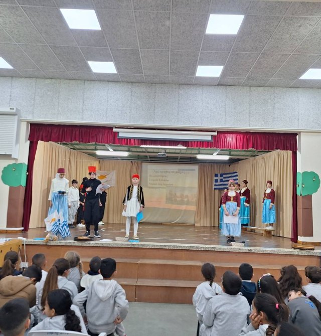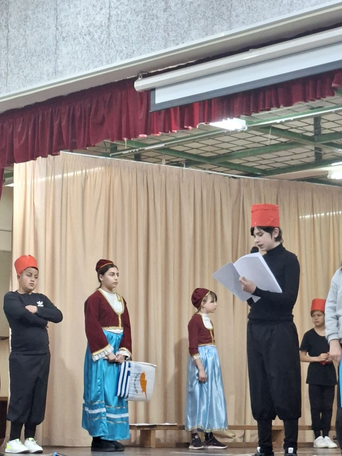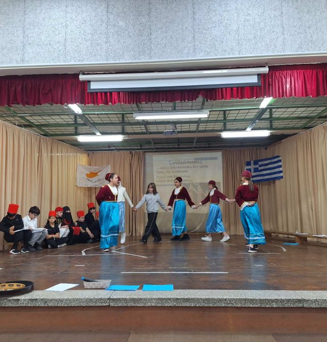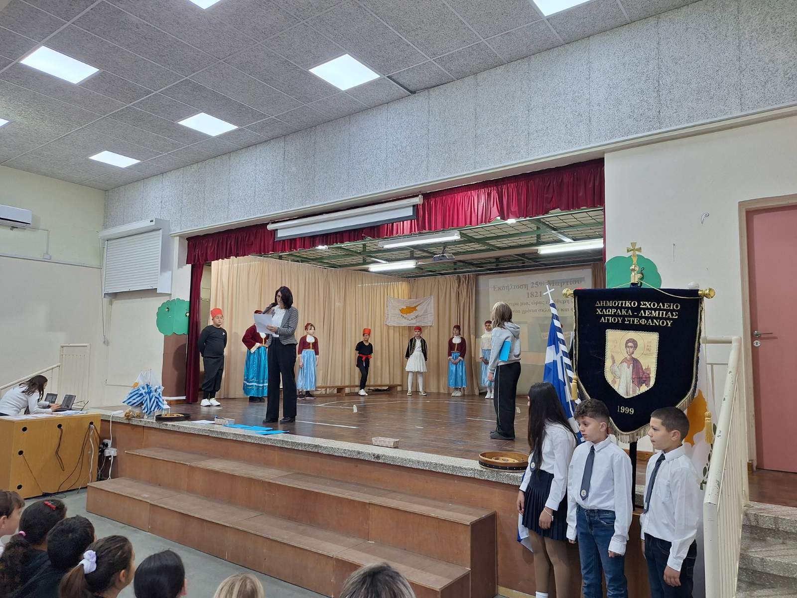 Η 1η Οκτωβρίου 1960 είναι μια μέρα ορόσημο για την Κύπρο, καθώς τότε ανακηρύχθηκε η Ανεξαρτησία της. Στο σχολείο μας, τιμήσαμε την ημέρα αυτή με γιορτή που περιλάμβανε ποιήματα, τραγούδια, ομιλίες και θεατρικά δρώμενα. Οι μαθητές αναφέρθηκαν στους αγώνες και τις θυσίες για την ελευθερία και τόνισαν μέσα από την εκδήλωση που ετοίμασαν την αγάπη τους για την πατρίδα.
