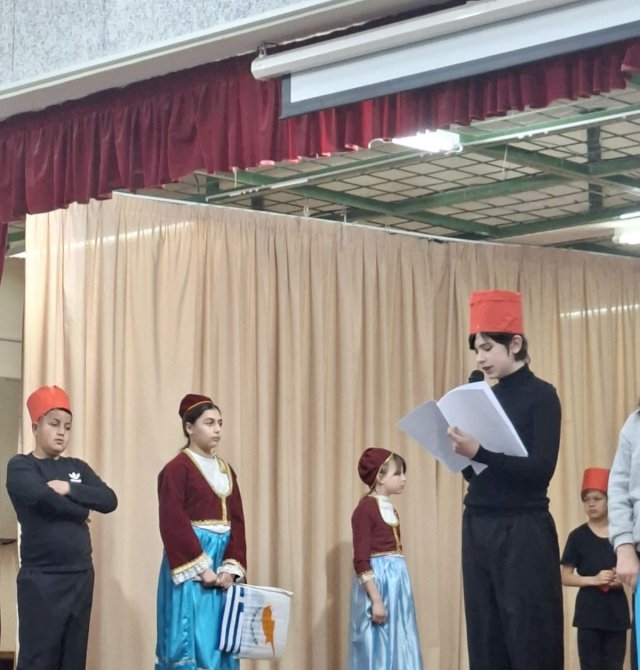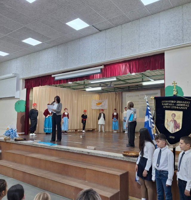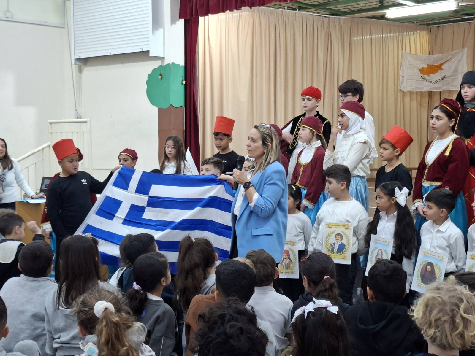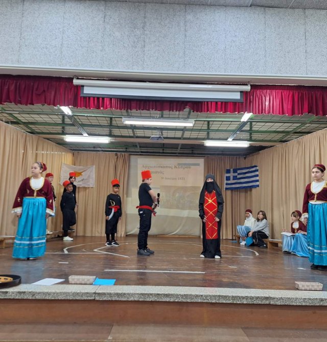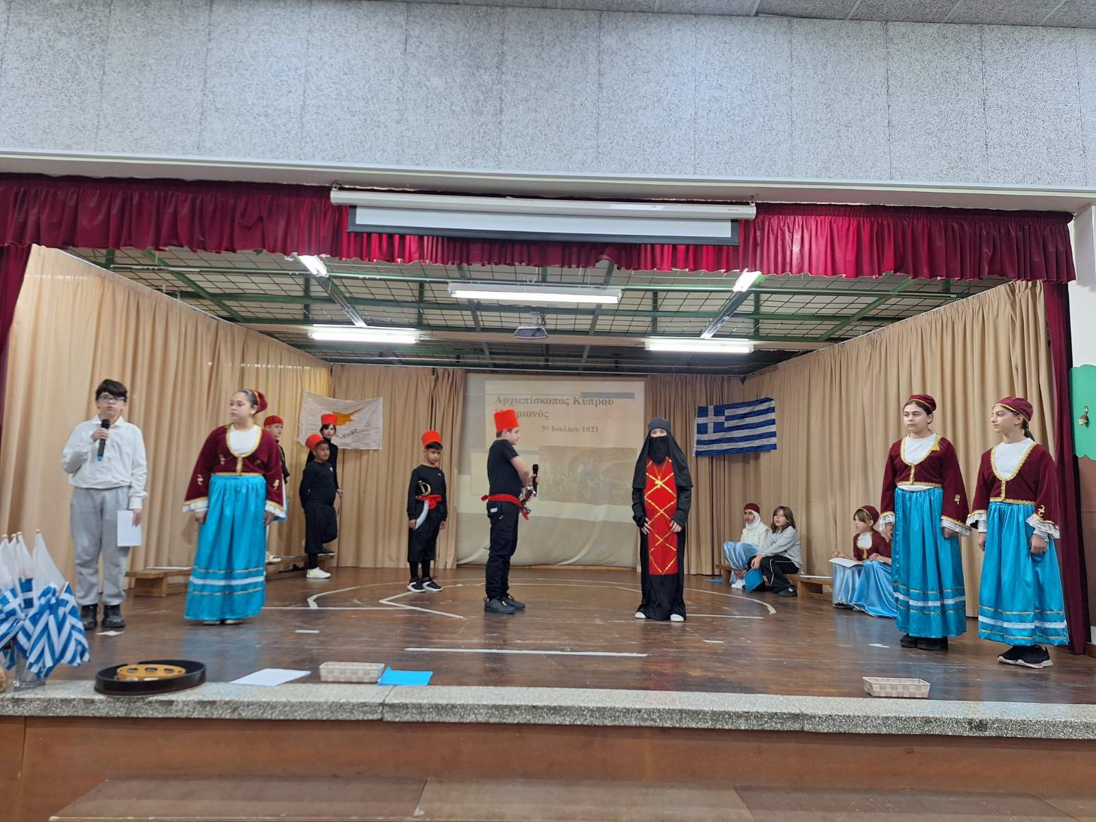 Η 1η Οκτωβρίου 1960 είναι μια μέρα ορόσημο για την Κύπρο, καθώς τότε ανακηρύχθηκε η Ανεξαρτησία της. Στο σχολείο μας, τιμήσαμε την ημέρα αυτή με γιορτή που περιλάμβανε ποιήματα, τραγούδια, ομιλίες και θεατρικά δρώμενα. Οι μαθητές αναφέρθηκαν στους αγώνες και τις θυσίες για την ελευθερία και τόνισαν μέσα από την εκδήλωση που ετοίμασαν την αγάπη τους για την πατρίδα.