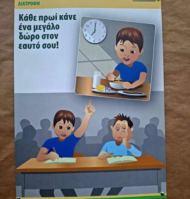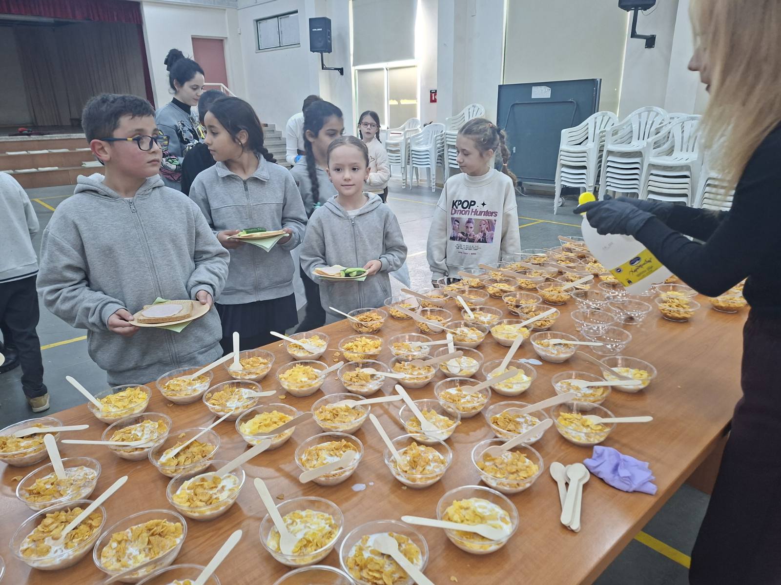 5/2/26 Η μέρα αφιερώθηκε στην υγιεινή διατροφή και συγκεκριμένα στο υγιεινό πρόγευμα. Αναμφίβολα, ένα πλήρες και υγιεινό πρόγευμα βοηθά τα παιδιά να ξεκινούν τη μέρα τους με ενέργεια και συγκέντρωση, ενισχύοντας τόσο τη σωματική όσο και τη πνευματική τους ανάπτυξη και ευεξία. Θερμές ευχαριστίες στον Σύνδεσμο Γονέων και Κηδεμόνων του σχολείου μας για την πολύτιμή του προσφορά, αφού με τις άοκνες προσπάθειές του υλοποίησε το υγιεινό πρόγευμα, μια σημαντική δράση η οποία προάγει τον υγιεινό τρόπο ζωής, αλλά ταυτόχρονα αποτελεί δράση αγάπης και στήριξης προς τους μαθητές. Επίσης, απευθύνουμε θερμές ευχαριστίες στις εταιρείες – χορηγούς του προγεύματος που με την ευγενική τους προσφορά σε ποικιλία προϊόντων, στα πλαίσια της εταιρικής ευθύνης, συνέβαλαν στην πραγματοποίηση της συγκεκριμένης δράσης: