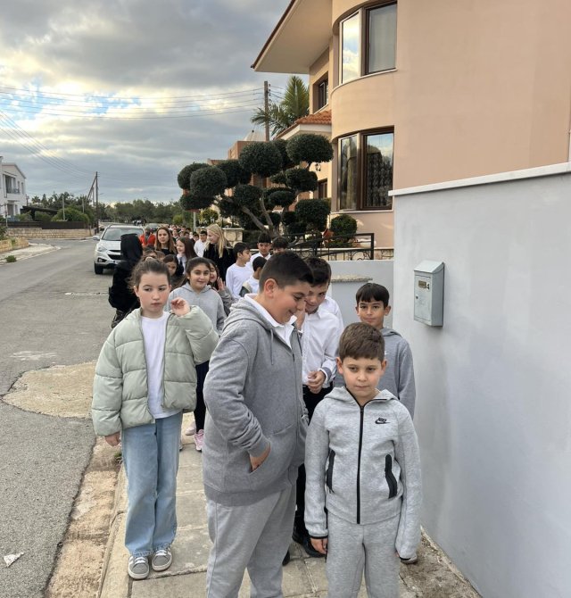 Στις 11/12/25 οι μαθητές της Ε΄ τάξης τραγούδησαν τα κάλαντα σε υπηρεσίες και οικήματα στη Λέμπα και στη Χλώρακα προσφέροντας χριστουγεννιάτικη ατμόσφαιρα και ενισχύοντας την τοπική παράδοση.