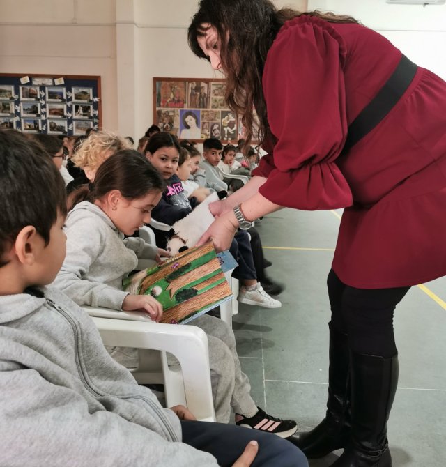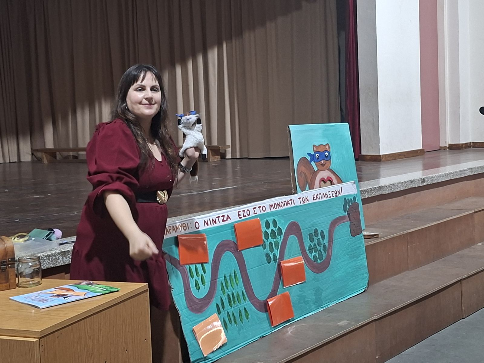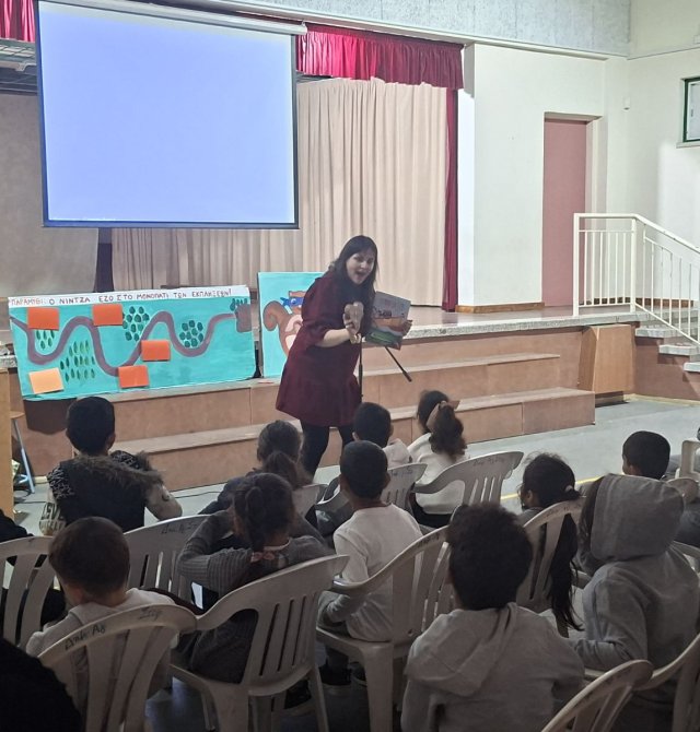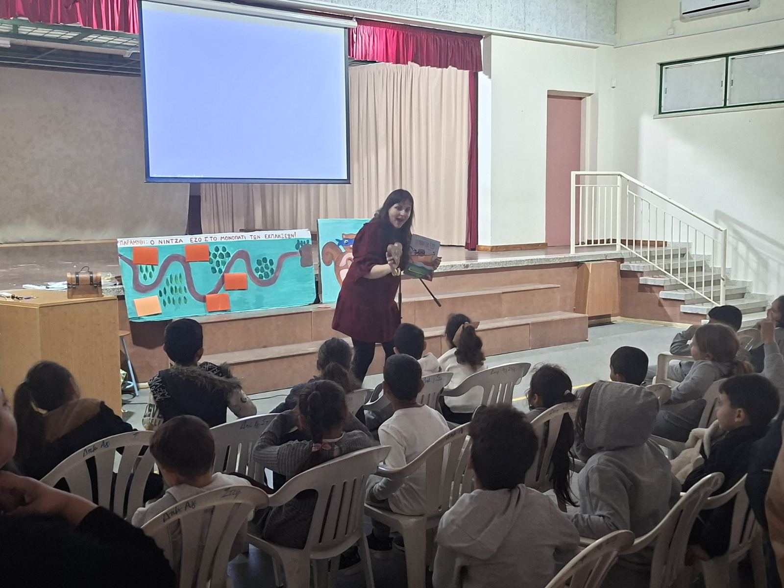 Στα πλαίσια των δράσεων φιλαναγνωσίας η συγγραφέας - εκπαιδευτικός Ελένη Παπακυριάκου παρουσίασε στους μαθητές μας το παραμύθι " Ο Νίντζα Έζο στο μονοπάτι των εκπλήξεων". Μέσα από τη διαδραστική αφήγηση του παραμυθιού η συγγραφέας μάς παρέσυρε σε έναν κόσμο γεμάτο περιπέτεια, ανατροπές και πολύτιμα μηνύματα. Τα παιδιά συμμετείχαν ενεργά, γέλασαν με την καρδιά τους και άφησαν τη φαντασία τους να πετάξει, ζώντας κάθε στιγμή της ιστορίας. Την ευχαριστούμε θερμά για την υπέροχη εμπειρία που μας πρόσφερε και για τη χαρά που χάρισε στους μικρούς μας μαθητές- αναγνώστες!