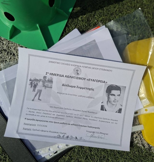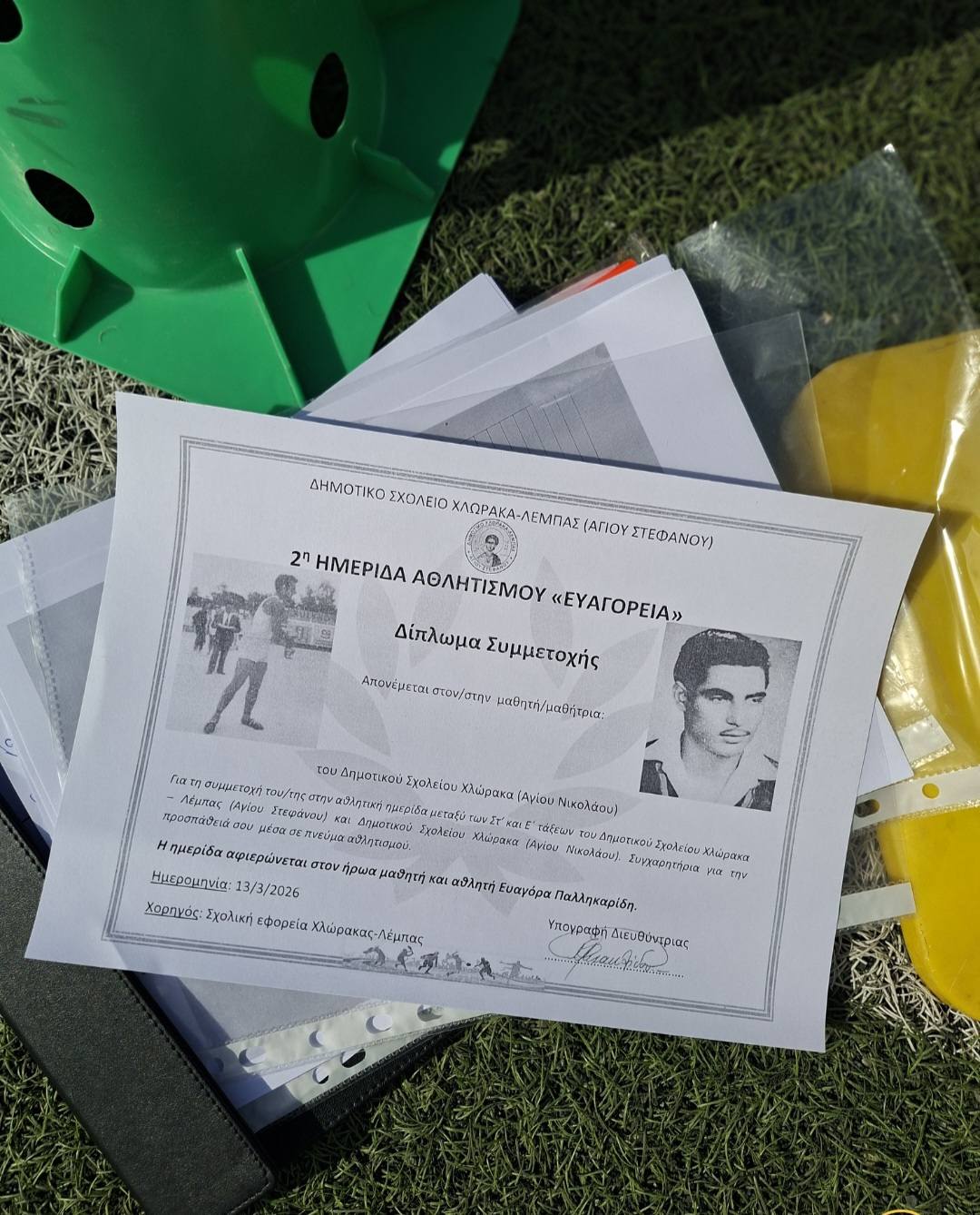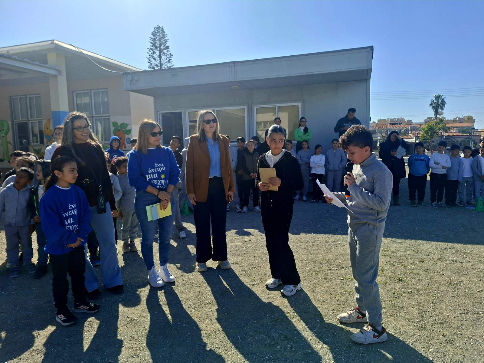 Στις 13/3/26 πραγματοποιήθηκε ένα όμορφο αθλητικό ΣΥΝαπάντημα...Το σχολείο μας υποδέχτηκε σήμερα με χαρά μαθητές και δασκάλους του Δημοτικού Σχολείου Αγίου Νικολάου Χλώρακας. Τα παιδιά των Ε και Στ τάξεων συμμετείχαν στην διασχολικη αθλητικη ημεριδα "Ευαγόρεια" , αφιερωμενη στον ήρωα μαθητή και αθλητή Ευαγορα Παλληκαριδη και πέρασαν μια όμορφη μέρα, προωθώντας έμπρακτα τις αξίες της συνεργασίας της ομαδικότητας και του ΣΕΒΑΣΜΟΥ.