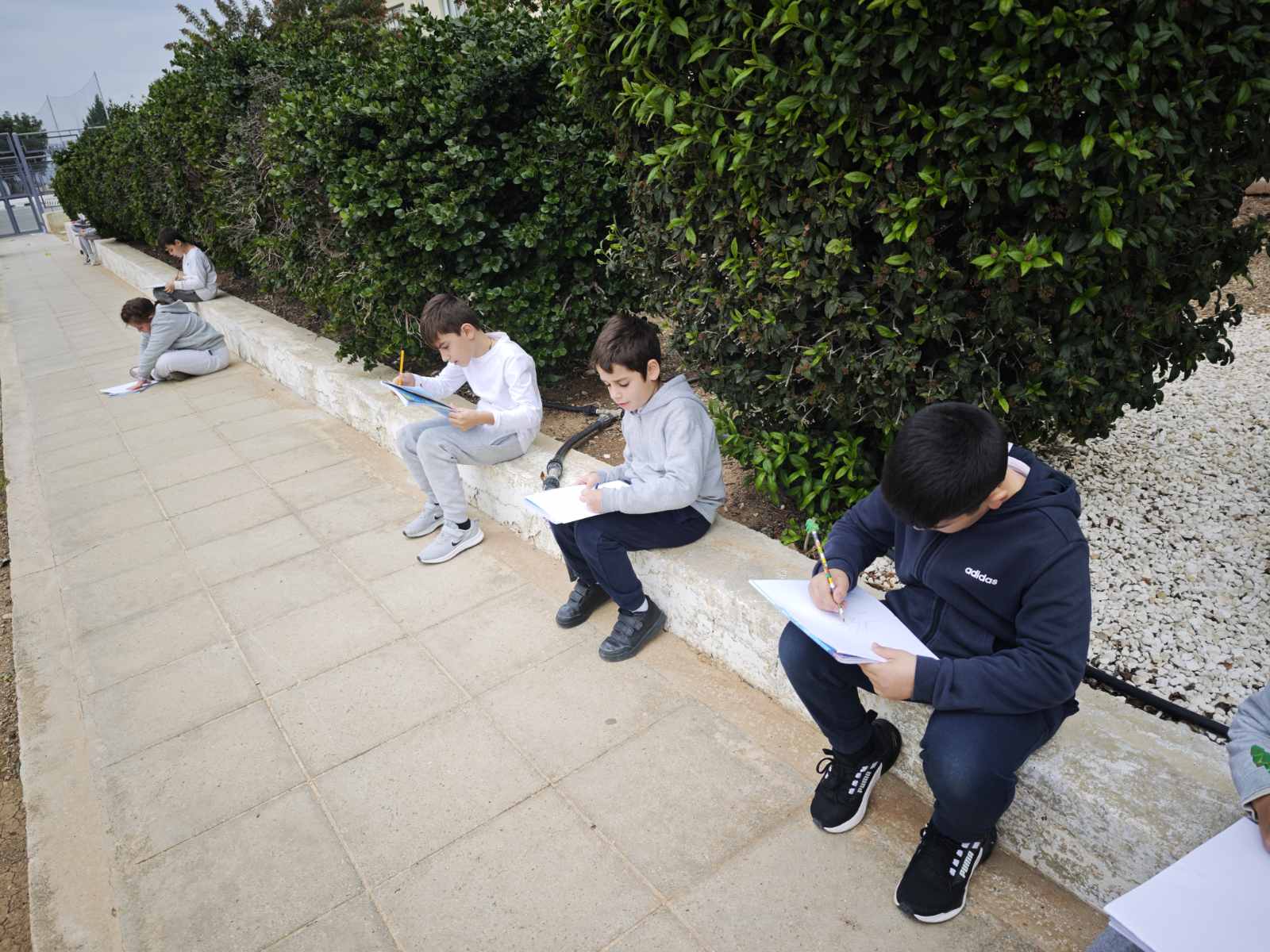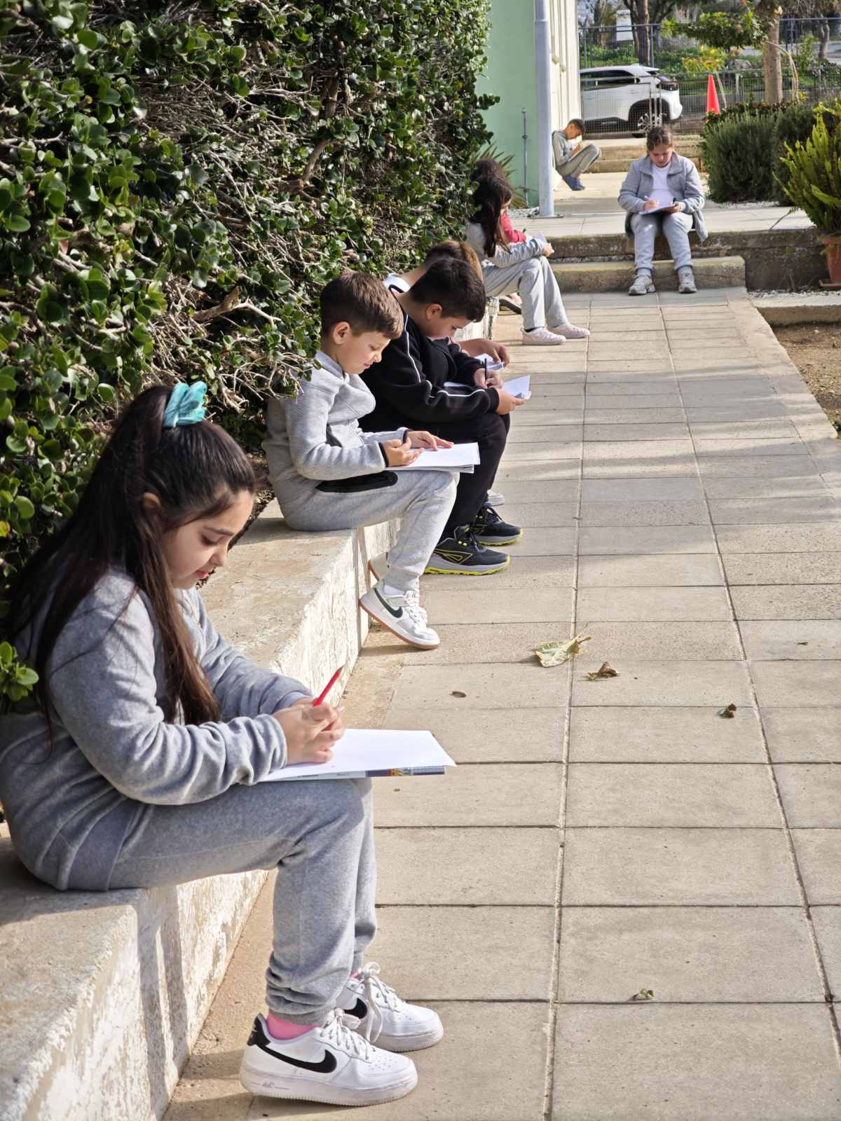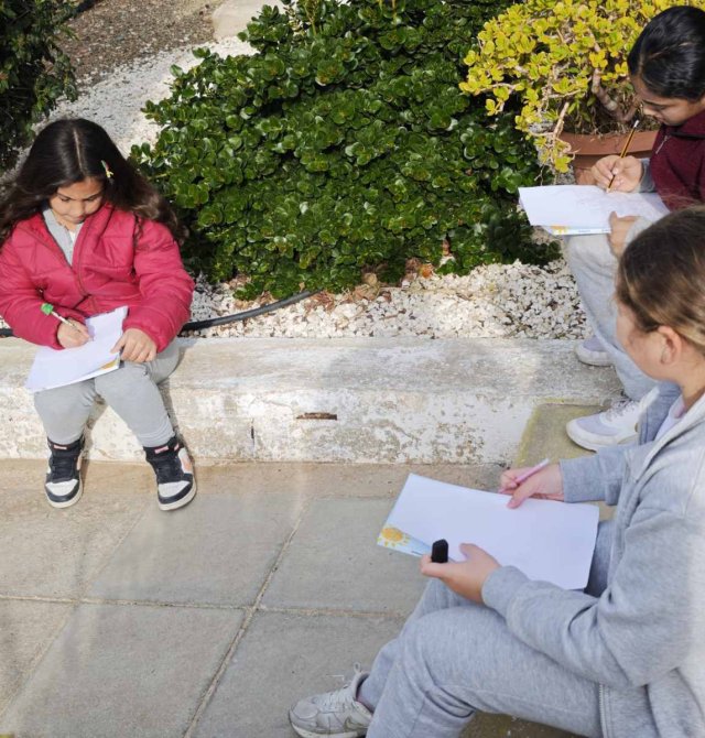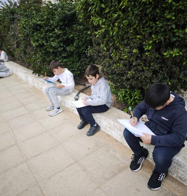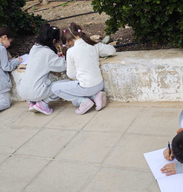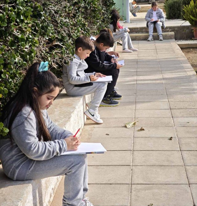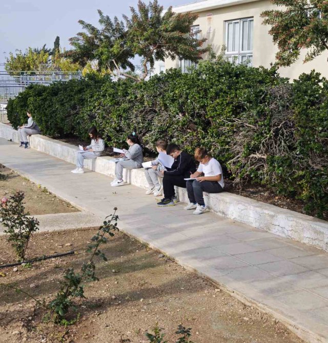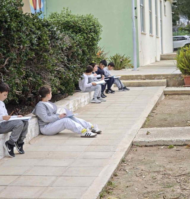 Οι μαθητές της Γ΄τάξης απόλαυσαν μια δημιουργική δραστηριότητα στον κήπο του σχολείου,σχεδιάζοντας όσα τους ενέπνευσε η φύση, με ιδιαίτερη προσοχή στα είδη γραμμών και μοτίβων. Δέντρα και λουλούδια έγιναν πηγή φαντασίας και χαράς, μετατρέποντας τον σχολικό κήπο σε έναν χώρο παρατήρησης, δημιουργίας, έκφρασης και μάθησης.