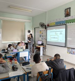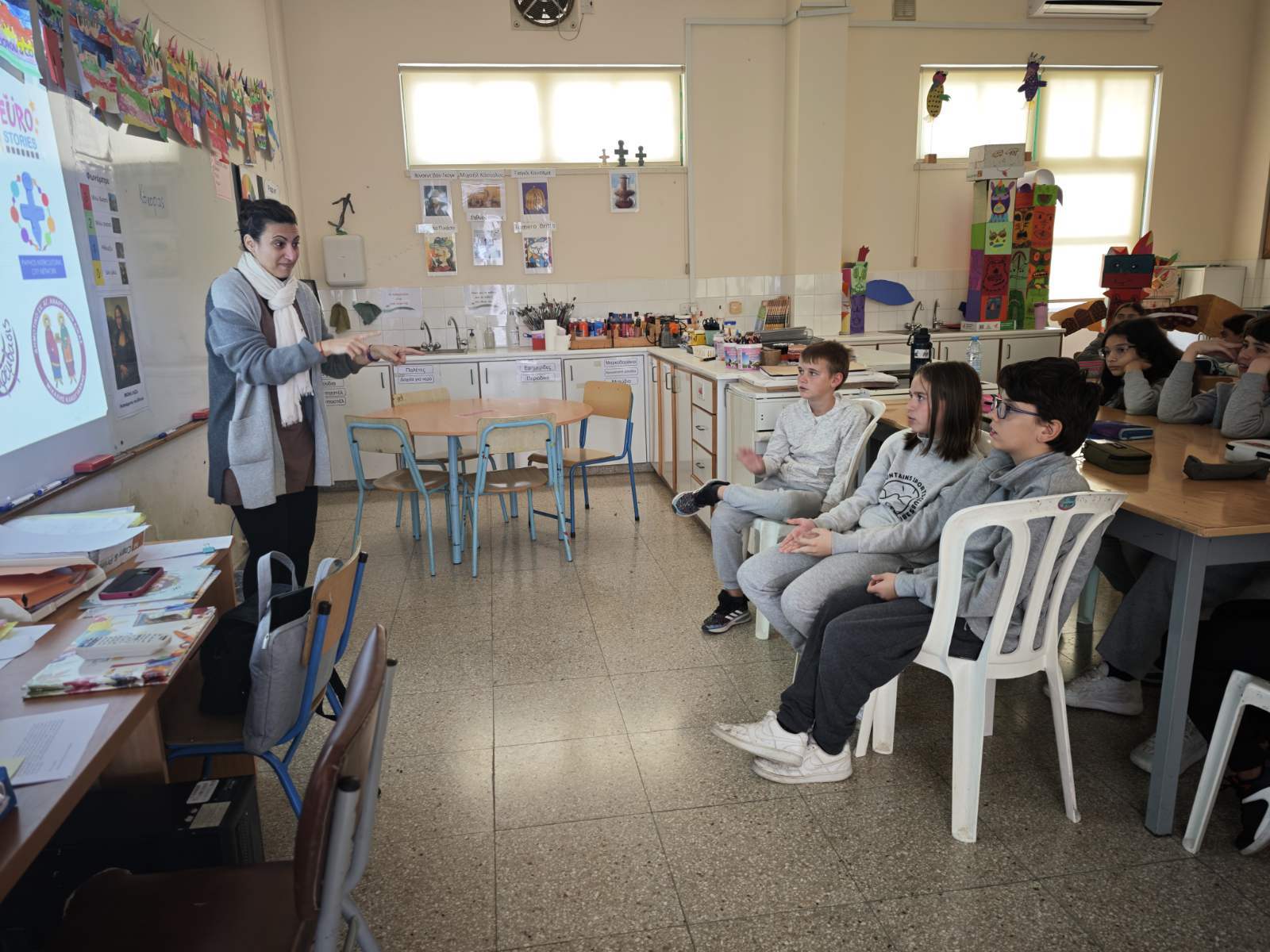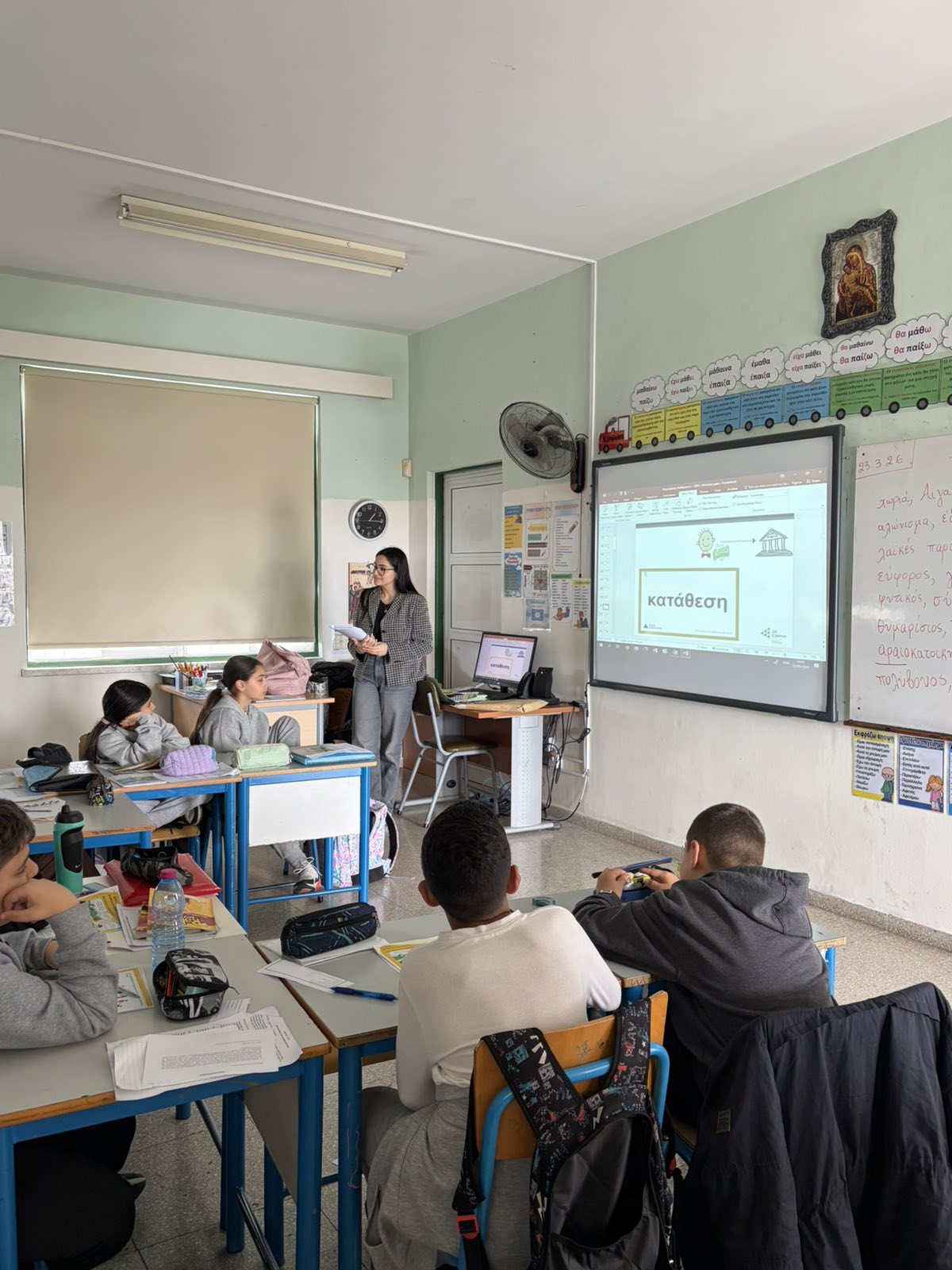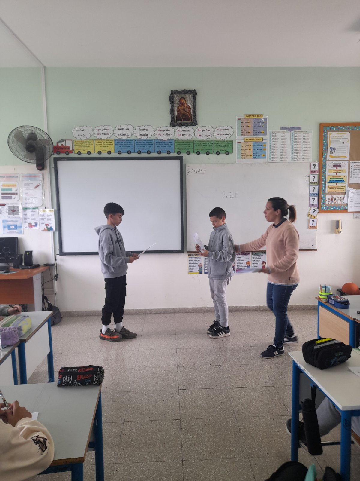 Στις 6/3/26 πραγματοποιήθηκε στο σχολείο μας δειγματικό μάθημα αγγλικών στην τάξη Δ΄2 από τη σύμβουλο αγγλικών κα Μαρία Παπαπολυδώρου. Το δειγματικό παρακολούθησαν εκπαιδευτικοί του σχολείου μας, καθώς και εκπαιδευτικοί από γειτονικές σχολικές μονάδες, όπως το δημοτικό Χλώρακα (Αγίου Νικολάου), Κισσόνεργας και Έμπας. Ευχαριστούμε θερμά την κα Μαρία Παπαπολυδώρου για το δειγματικό μάθημα, καθώς και την κα Μαρία Αντωνίου διδάσκουσα αγγλικών στο τμήμα Δ΄2, καθώς και την κα Μαρία Χαμπή, υπεύθυνη εκπαιδευτικό του τμήματος Δ΄2 τόσο για την προετοιμασία των μαθητών όσο και της αίθουσας.