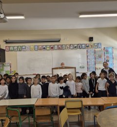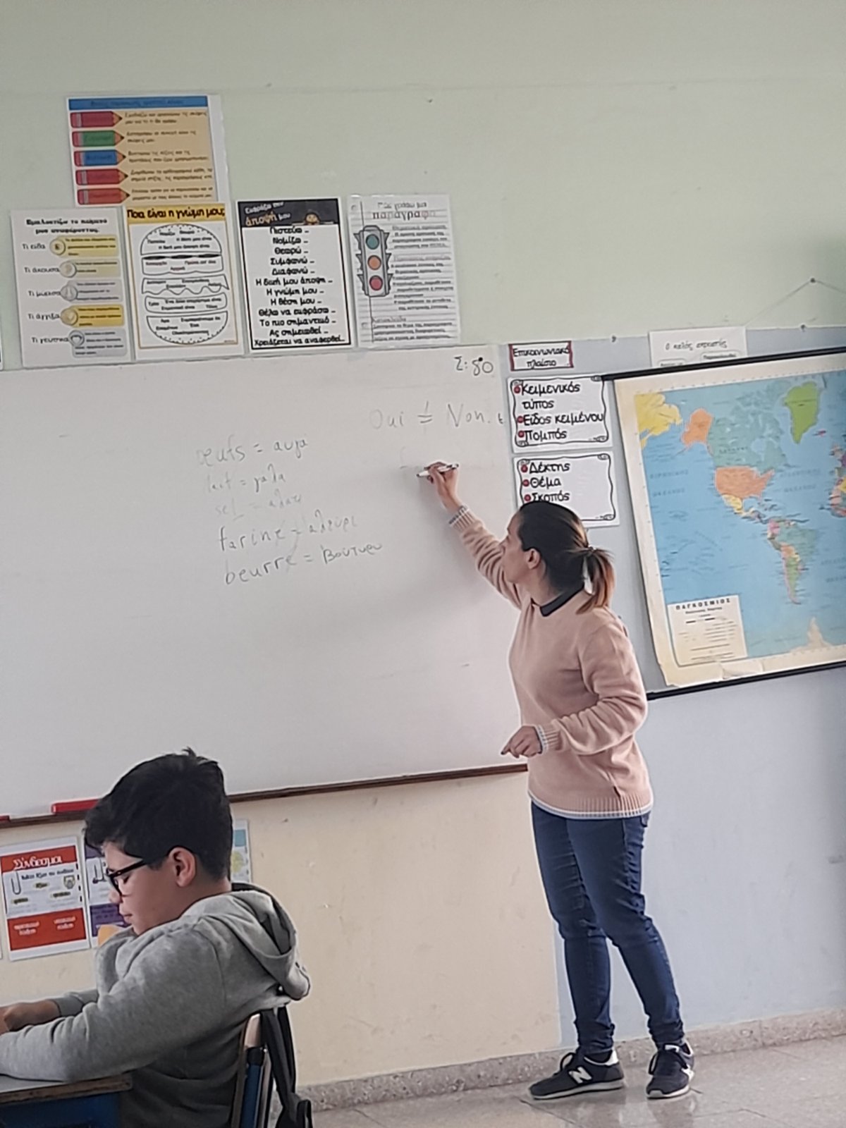Στις 27/3/2026, στο πλαίσιο του προγράμματος Ομαλής Μετάβασης, πραγματοποιήθηκε μάθημα γαλλικής γλώσσας από καθηγήτρια γαλλικής φιλολογίας για τους μαθητές/τριες των Στ’ τάξεων. Μέσα από μια ευχάριστη και διαδραστική προσέγγιση, τα παιδιά ήρθαν σε επαφή με τη γαλλική γλώσσα, δείχνοντας ιδιαίτερο ενδιαφέρον και ενθουσιασμό. Η δράση ολοκληρώθηκε με ένα γλυκό κέρασμα γαλλικών κρουασάν, προσφέροντας στους μαθητές μια όμορφη και αξέχαστη εμπειρία.