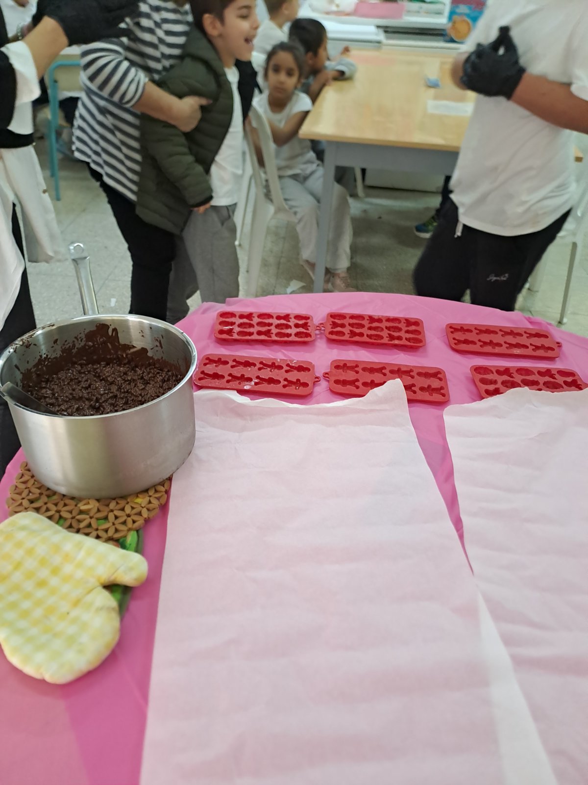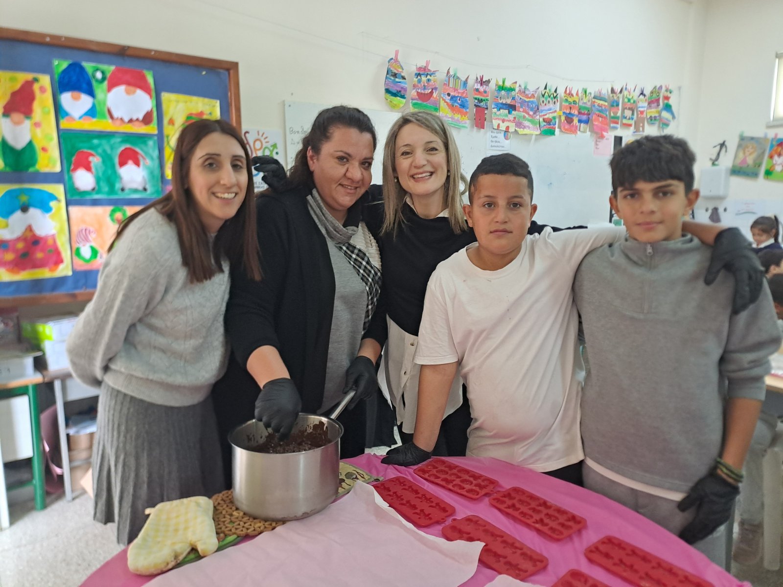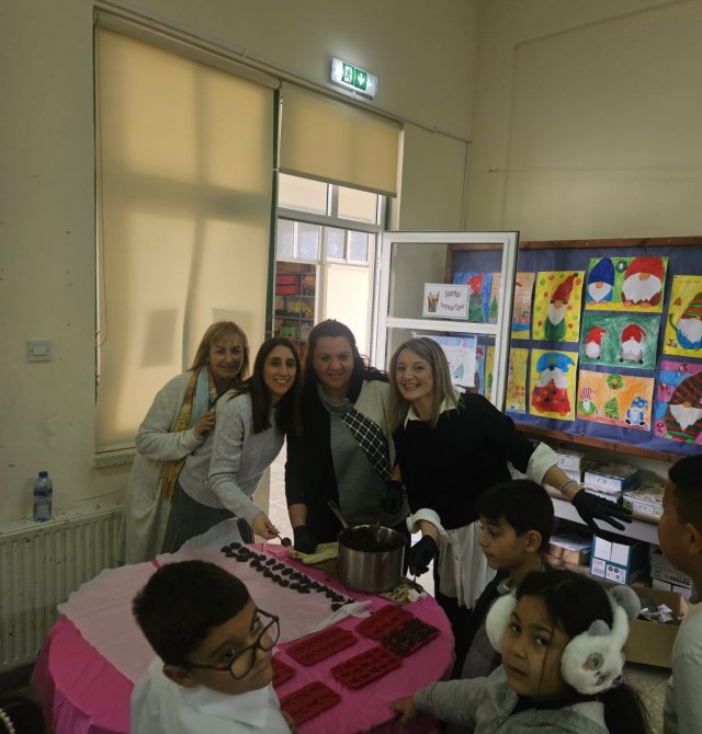 Τα παιδιά της Α΄τάξης κατασκεύασαν σοκολατάκια με τη βοήθεια μαθητών της Ε΄ και της Στ΄ τάξης.