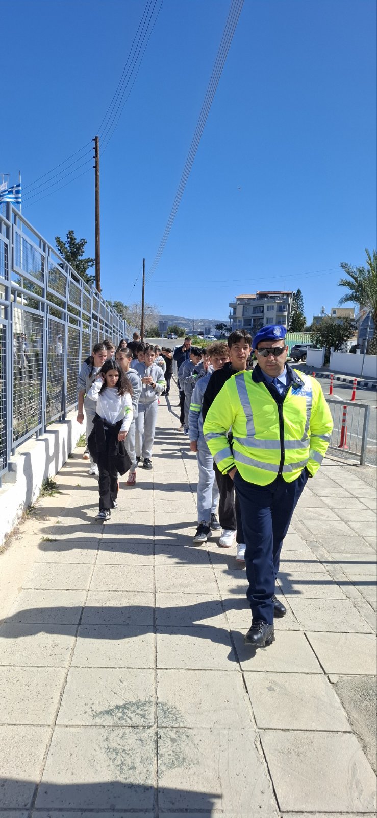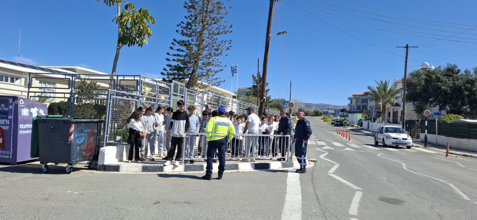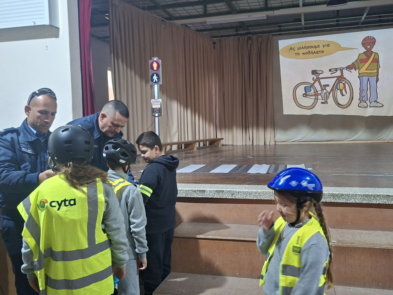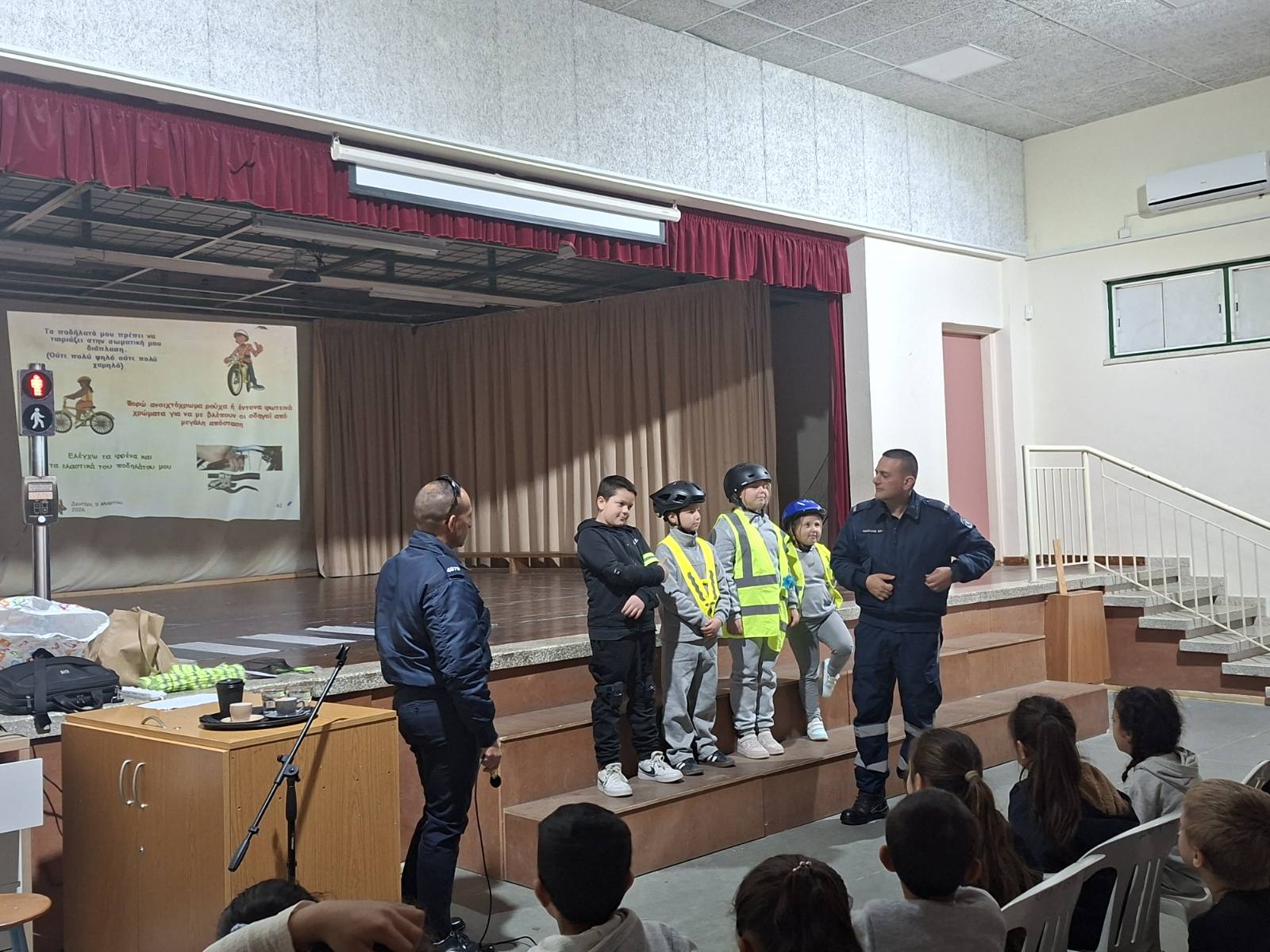 Στα πλαίσια του προγράμματος εκπαίδευσης των μαθητών μας σε θέματα οδικής ασφάλειας, στις 9/3/26 επισκέφθηκαν το σχολείο μας ο κ. Χρήστος Λιασίδης (Υπεύθυνος Οδικής Ασφάλειας της Τροχαίας Πάφου, ο κ. Αντρέας Στυλιανού (Κοινοτική Αστυνόμευση) και ο κ. Αντρέας Αριστάρχου (Κοινοτική Αστυνόμευση) και πραγματοποίησαν διαδραστική διάλεξη με θέμα τους ασφαλείας τρόπους κυκλοφορίας. Η δράση ολοκληρώθηκε με περιδιάβαση στην κοινότητα με έμφαση στην ασφαλή μετάβαση.