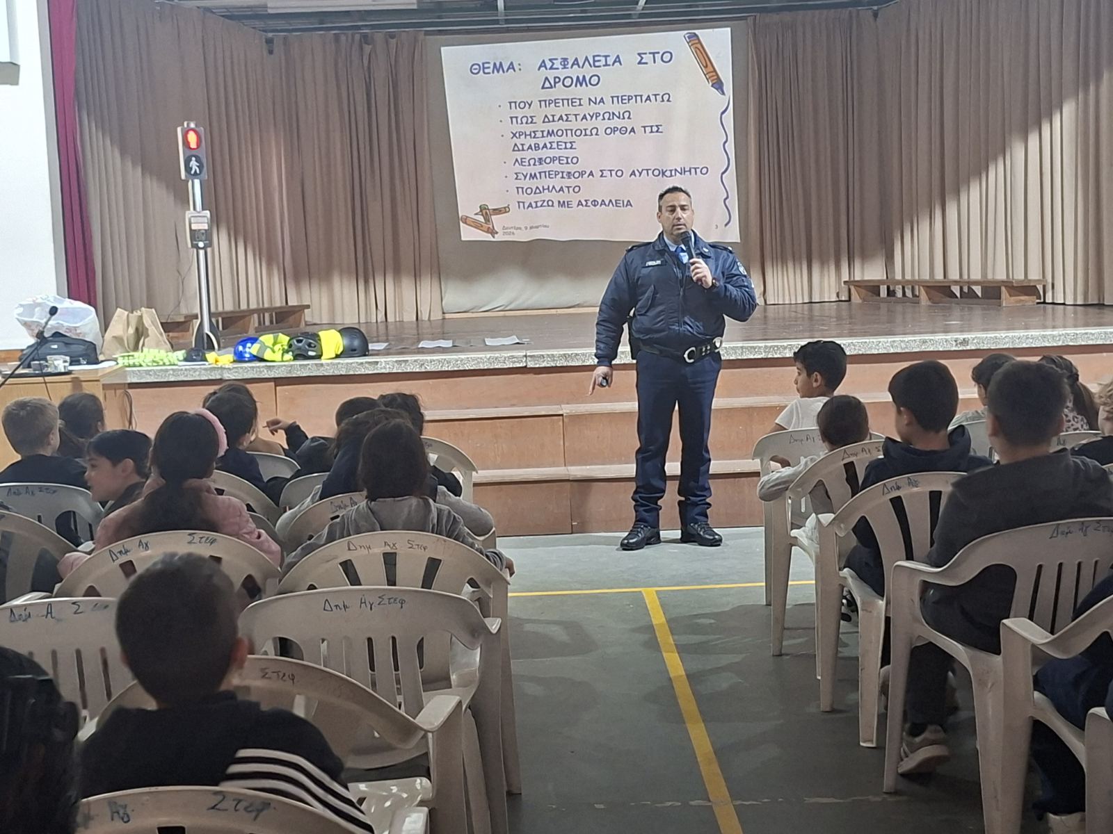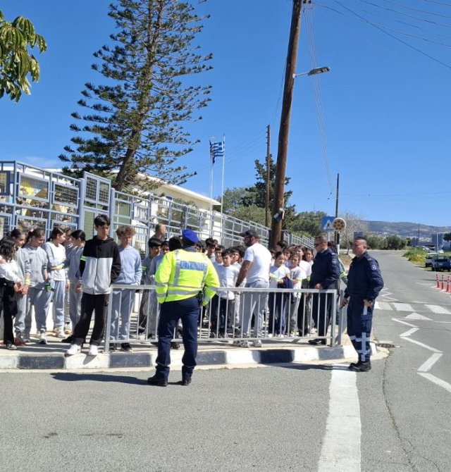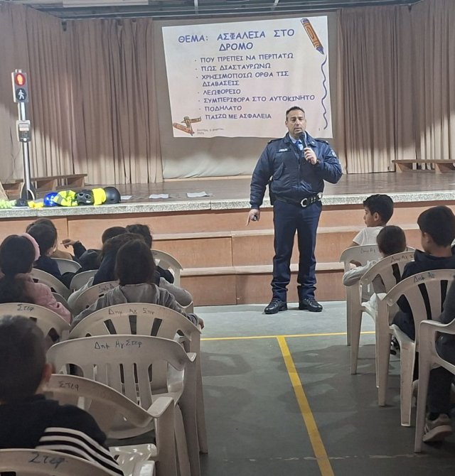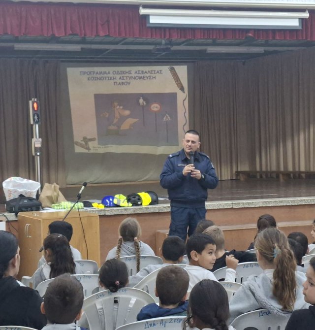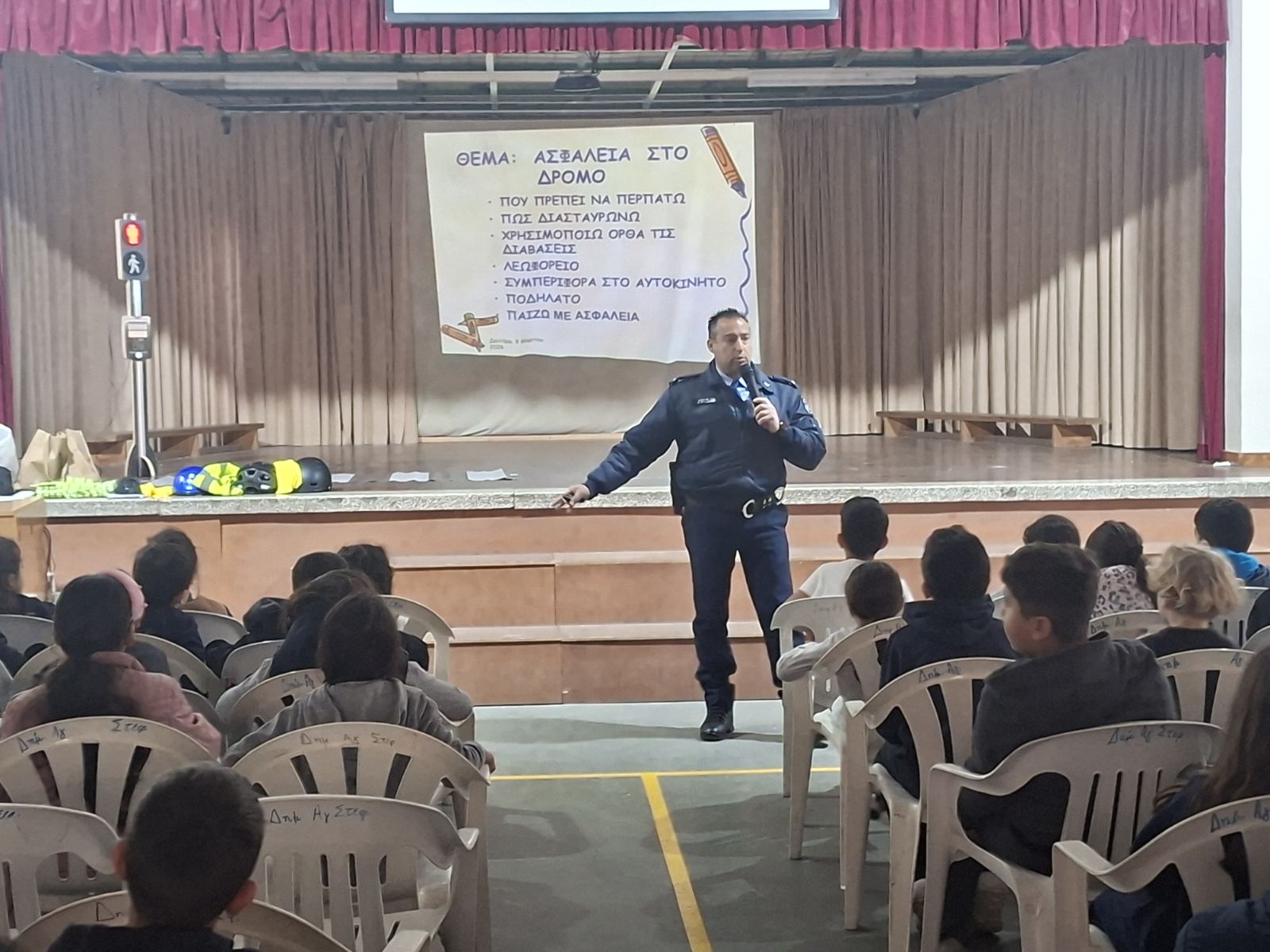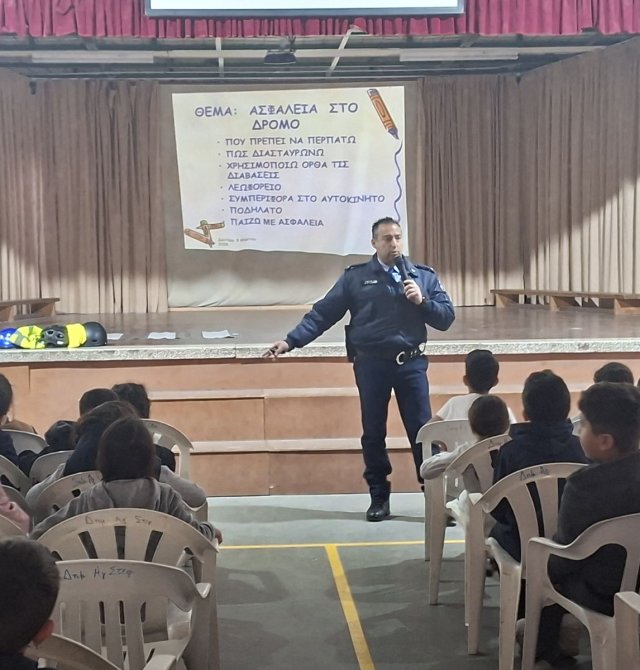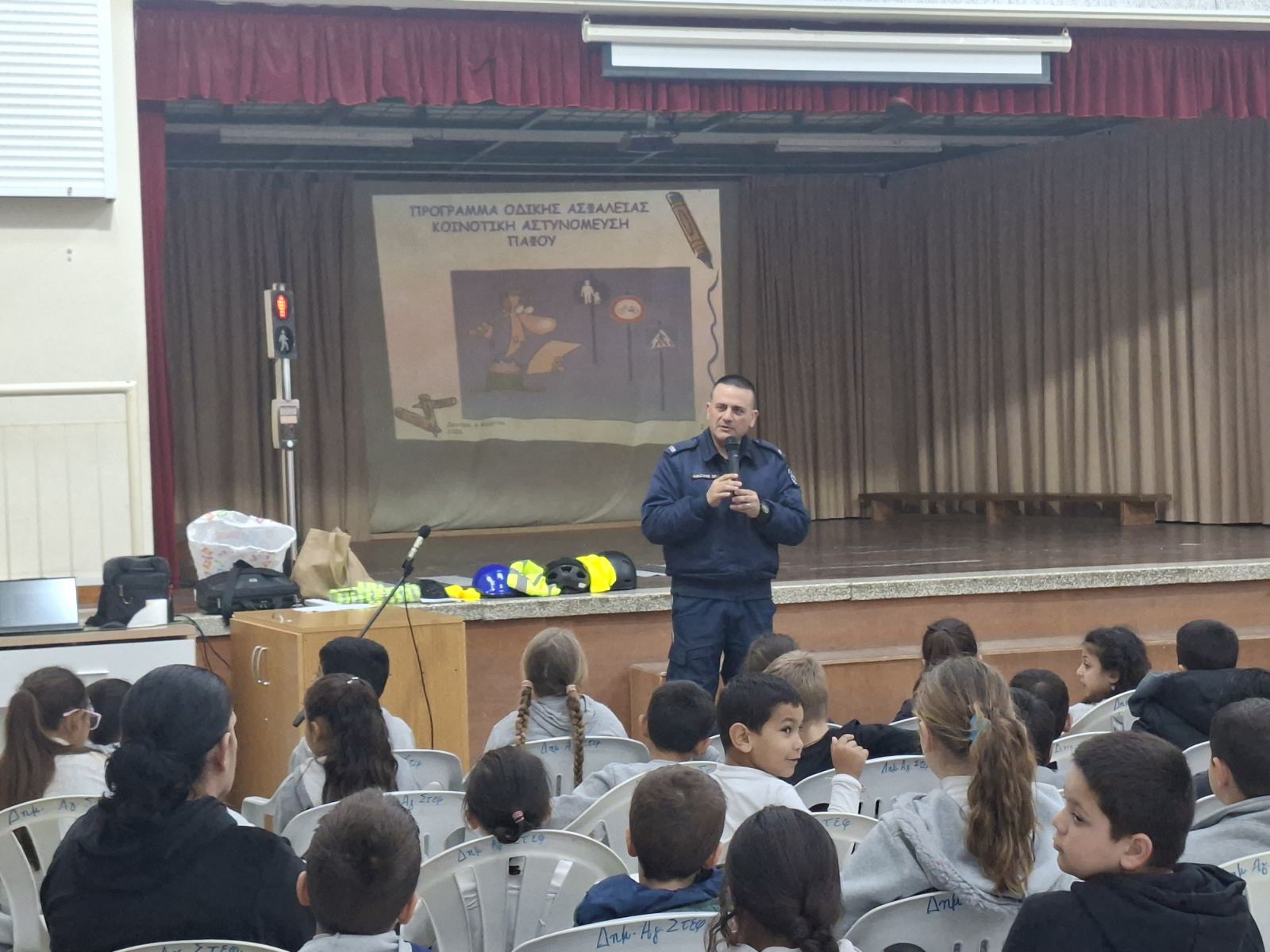 Στα πλαίσια του προγράμματος εκπαίδευσης των μαθητών μας σε θέματα οδικής ασφάλειας, στις 9/3/26 επισκέφθηκαν το σχολείο μας ο κ. Χρήστος Λιασίδης (Υπεύθυνος Οδικής Ασφάλειας της Τροχαίας Πάφου, ο κ. Αντρέας Στυλιανού (Κοινοτική Αστυνόμευση) και ο κ. Αντρέας Αριστάρχου (Κοινοτική Αστυνόμευση) και πραγματοποίησαν διαδραστική διάλεξη με θέμα τους ασφαλείας τρόπους κυκλοφορίας. Η δράση ολοκληρώθηκε με περιδιάβαση στην κοινότητα με έμφαση στην ασφαλή μετάβαση.