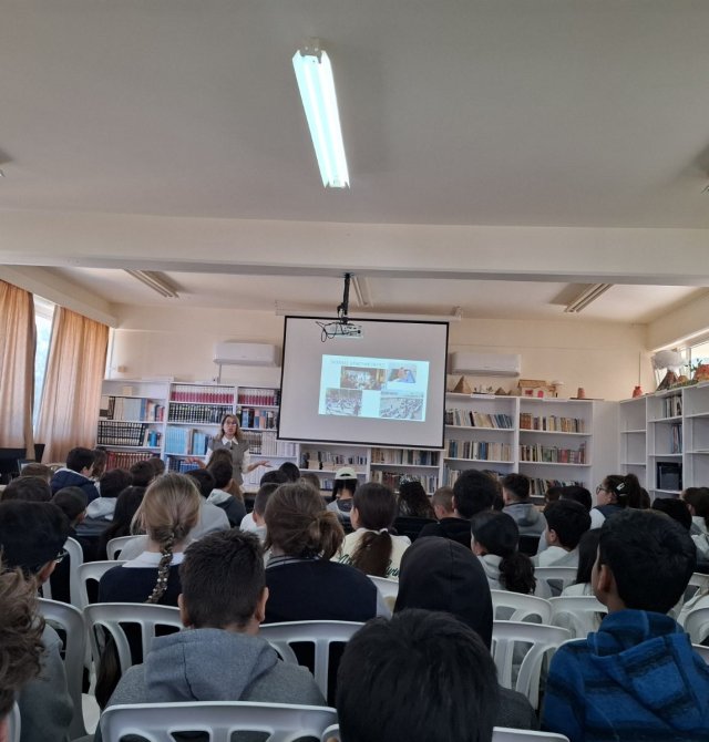 Στις 11/3/26 η εικαστικός κα Στέλλα Περικλέους επισκέφθηκε το σχολείο μας στα πλαίσια του προγράμματος «Δημιουργικές Συνεργασίες με Καλλιτέχνες» και καθοδήγησε τους μαθητές της Γ'3 σε εικαστική δραστηριότητα με θέμα «Ό,τι μας ενώνει». Η ενότητα περιέχει εικαστικές δραστηριότητες που αντλώντας έμπνευση από την αρχαιότητα και συγκεκριμένα τον αρχαίο οικισμό της Λέμπας στοχεύουν στην ενίσχυση της συνεργασίας, της επικοινωνίας, της αλληλοκατανόησης και της ομαδικότητας. Τα έργα που θα δημιουργηθούν μπορούν να αποτελέσουν γέφυρα μεταξύ σχολείου και κοινότητας, καθώς και του παρελθόντος με το παρόν και κυρίως το κοινό μέλλον.