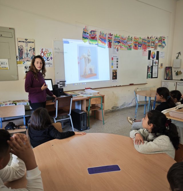 Στις 24/2/26 τα παιδιά των Γ' ταξεων επισκέφθηκαν το Αρχαιολογικό Μουσείο Πάφου όπου και ήρθαν σε επαφή με τα αρχαιολογικά ευρήματα που προέρχονται από τη Χλώρακα και τη Λέμπα. Μέσα στα πλαίσια του διαλόγου και της επικοινωνίας των μικρών παιδιών με τα εκθέματα του μουσείου, όπως προϋποθέτει η μουσειακή αγωγή, οι μαθητές συμμετείχαν σε διαδραστικές και βιωματικές δραστηριότητες που σχεδίασαν ειδικά οι εκπαιδευτικοί τους υπό την καθοδήγηση της ΒΔ Ιουλίας Παναγιώτου Αχεριώτη.