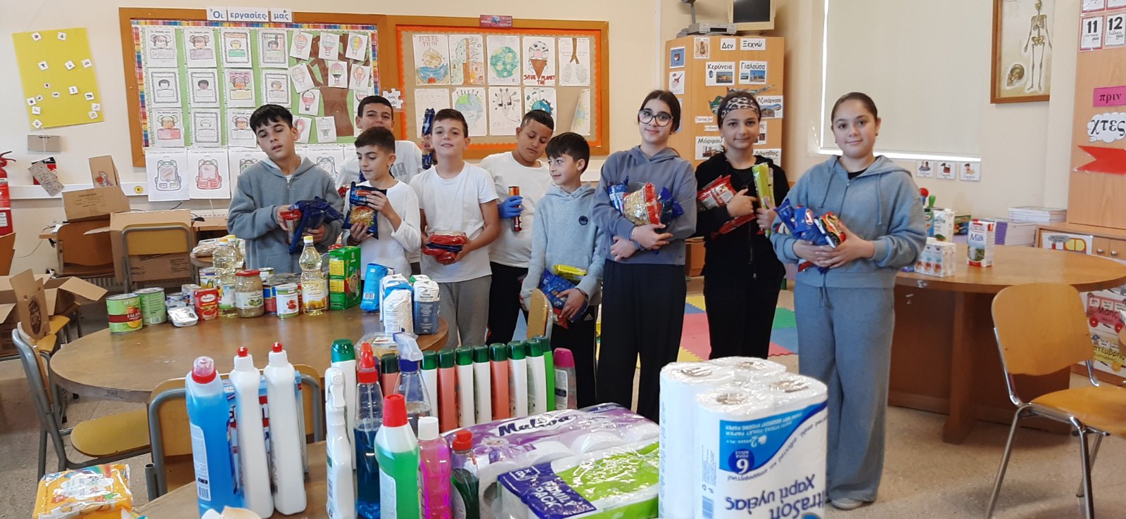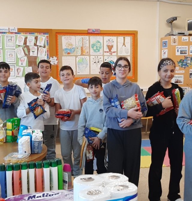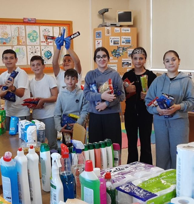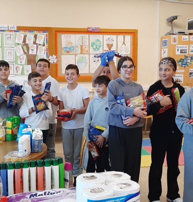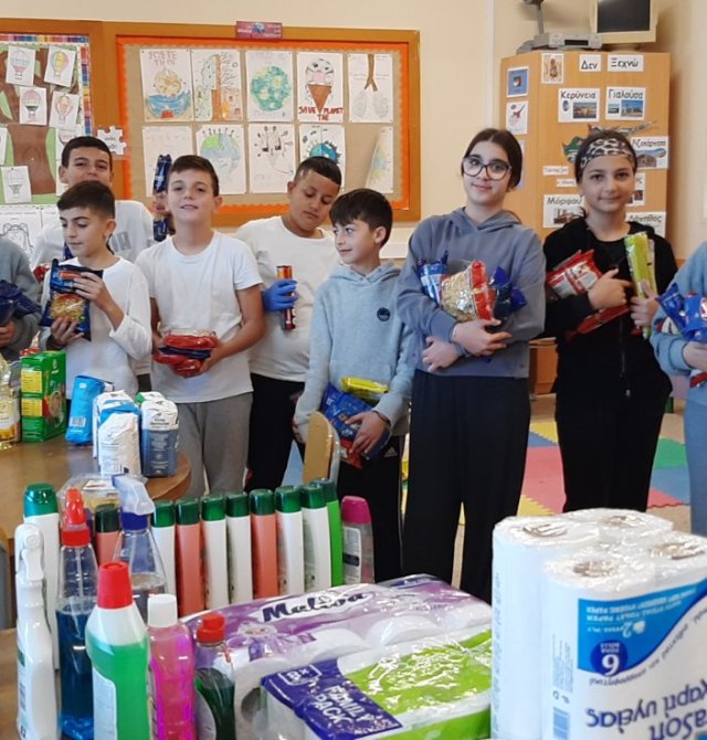 Το κεντρικό μαθητικό συμβούλιο με την καθοδήγηση της ΒΔ Έλενας Ιερείδου περισυνέλλεξε διάφορα είδη τροφίμων και καθαριστικών και δημιούργησε πακέτα αγάπης για άπορες οικογένειες του σχολείου μας.