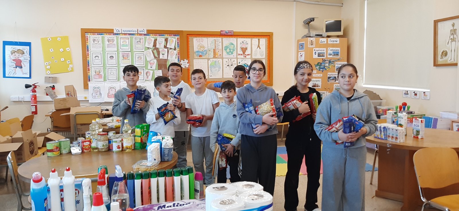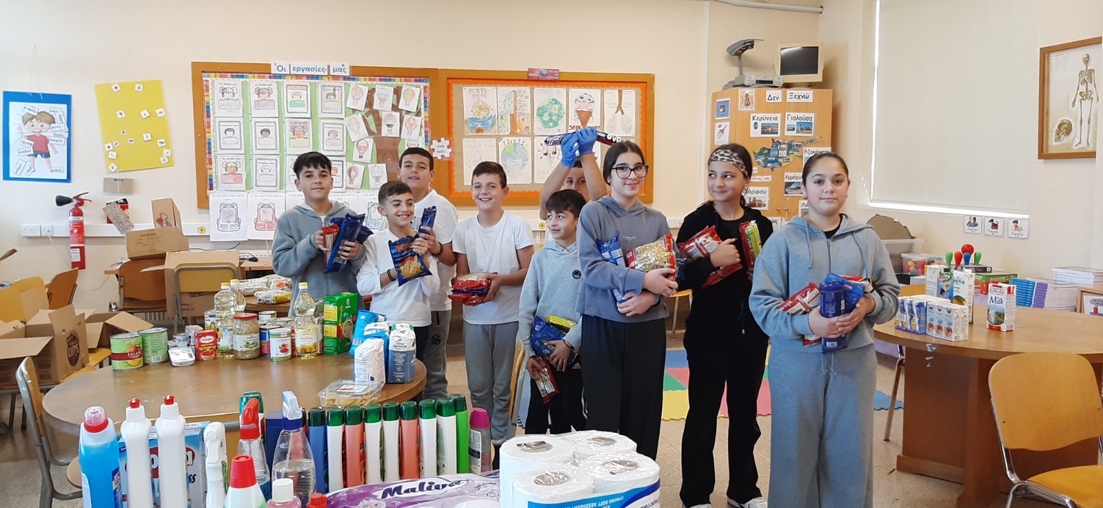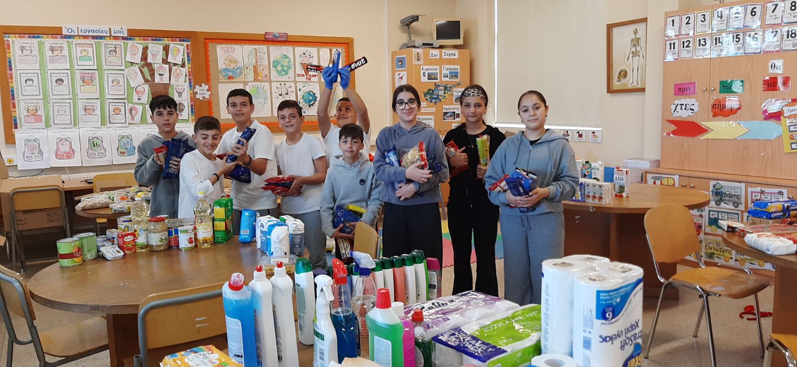 Το κεντρικό μαθητικό συμβούλιο με την καθοδήγηση της ΒΔ Έλενας Ιερείδου περισυνέλλεξε διάφορα είδη τροφίμων και καθαριστικών και δημιούργησε πακέτα αγάπης για άπορες οικογένειες του σχολείου μας.