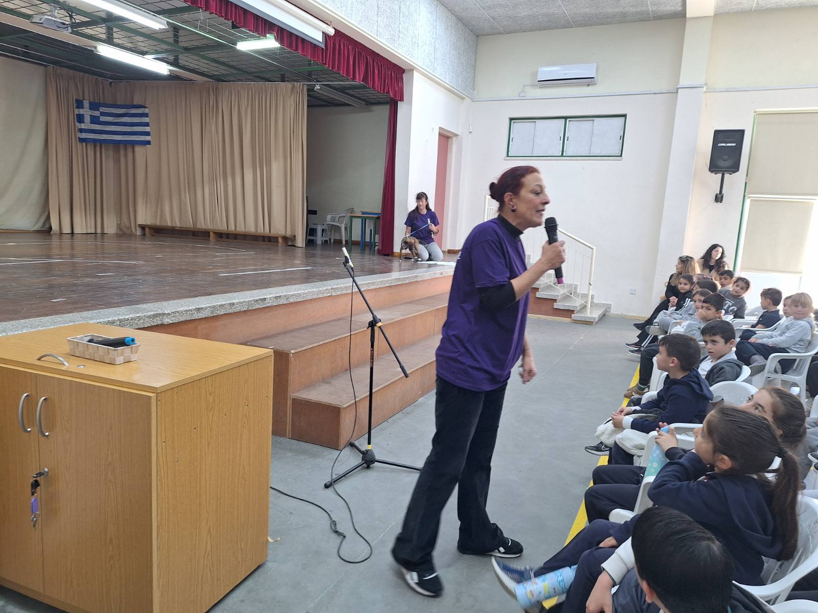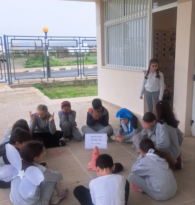 Στις 20/2/26 τα παιδιά της Δ' τάξης συμμετείχαν σε μια διαδραστική παρουσίαση του παραμυθιού «Τα Γυάλινα Κλουβιά». Πρόκειται για παραμύθι και εκπαιδευτικό πρόγραμμα που εντάσσεται στο κουτί «Παίζω Πολιτισμό», μια πρωτοβουλία του Υφυπουργείου Πολιτισμού της Κύπρου. Το πρόγραμμα στοχεύει στην επαφή των παιδιών με τις τέχνες και τη δημιουργικότητα. Με την καθοδήγηση της εκπαιδευτικού του σχολείου μας κας Αφροδίτης Ντζιούρου τα παιδιά παρουσίασαν μια θεατρική διασκευή του παραμυθιού.