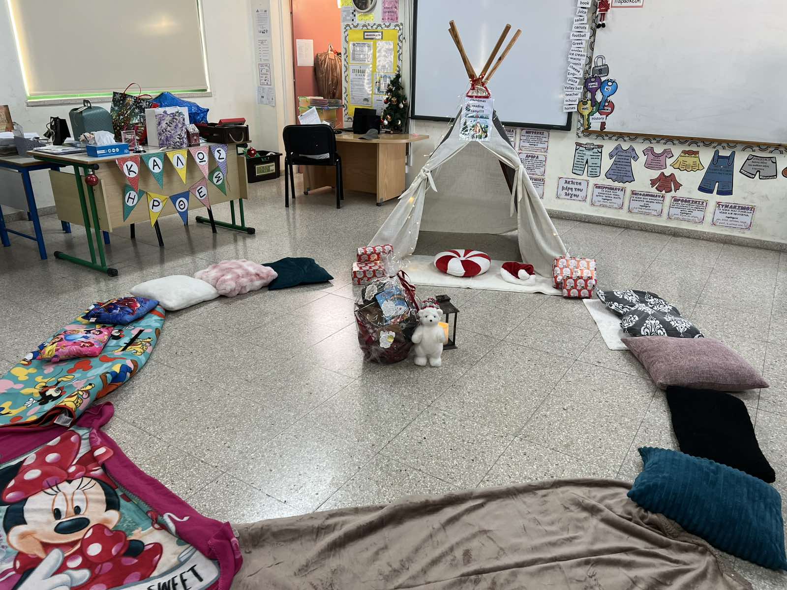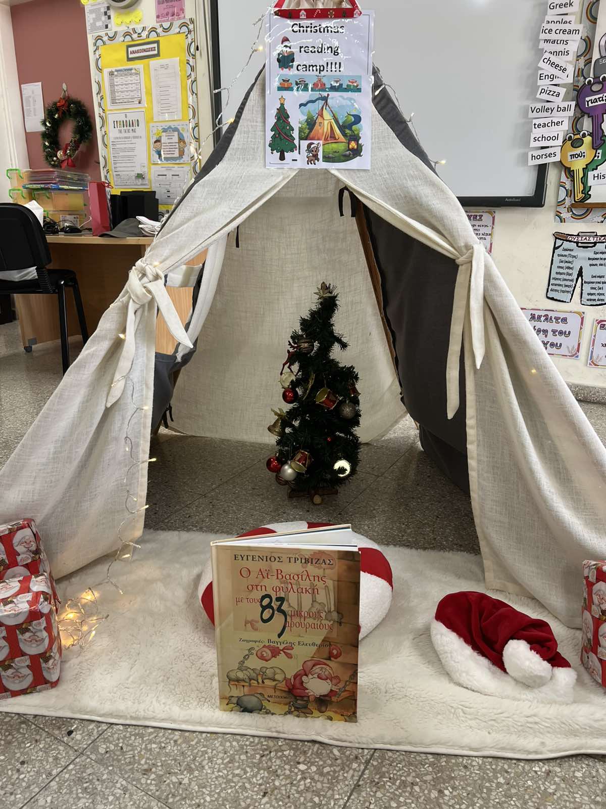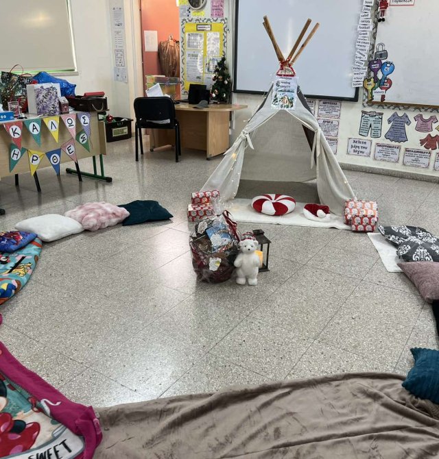 Στις 13/11/25 μια βιωματική δραστηριότητα με αληθινό αντίσκηνο βοήθησε τα παιδιά να προσεγγίσουν με ευαισθησία την έννοια της προσφυγιάς και του ξεριζωμού στην Κύπρο του 1974. Τα παιδιά μπήκαν μέσα στο αντίσκηνο, όπως έκαναν τότε πολλές οικογένειες που αναγκάστηκαν να αφήσουν τα σπίτια τους. Εκεί μπόρεσαν να ακούσουν μαρτυρίες, να δουν φωτογραφίες ή αντικείμενα της εποχής και να συζητήσουν πώς νιώθει κάποιος όταν χάνει τον τόπο του, στοχεύοντας στην ενσυναίσθηση, στην κατανόηση της ιστορικής πραγματικότητας και στον σεβασμό προς όσους βίωσαν τον ξεριζωμό.