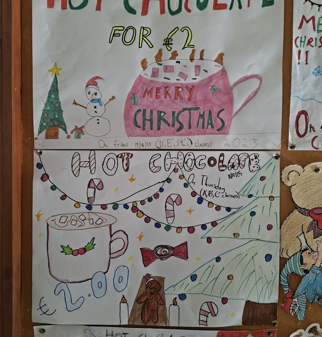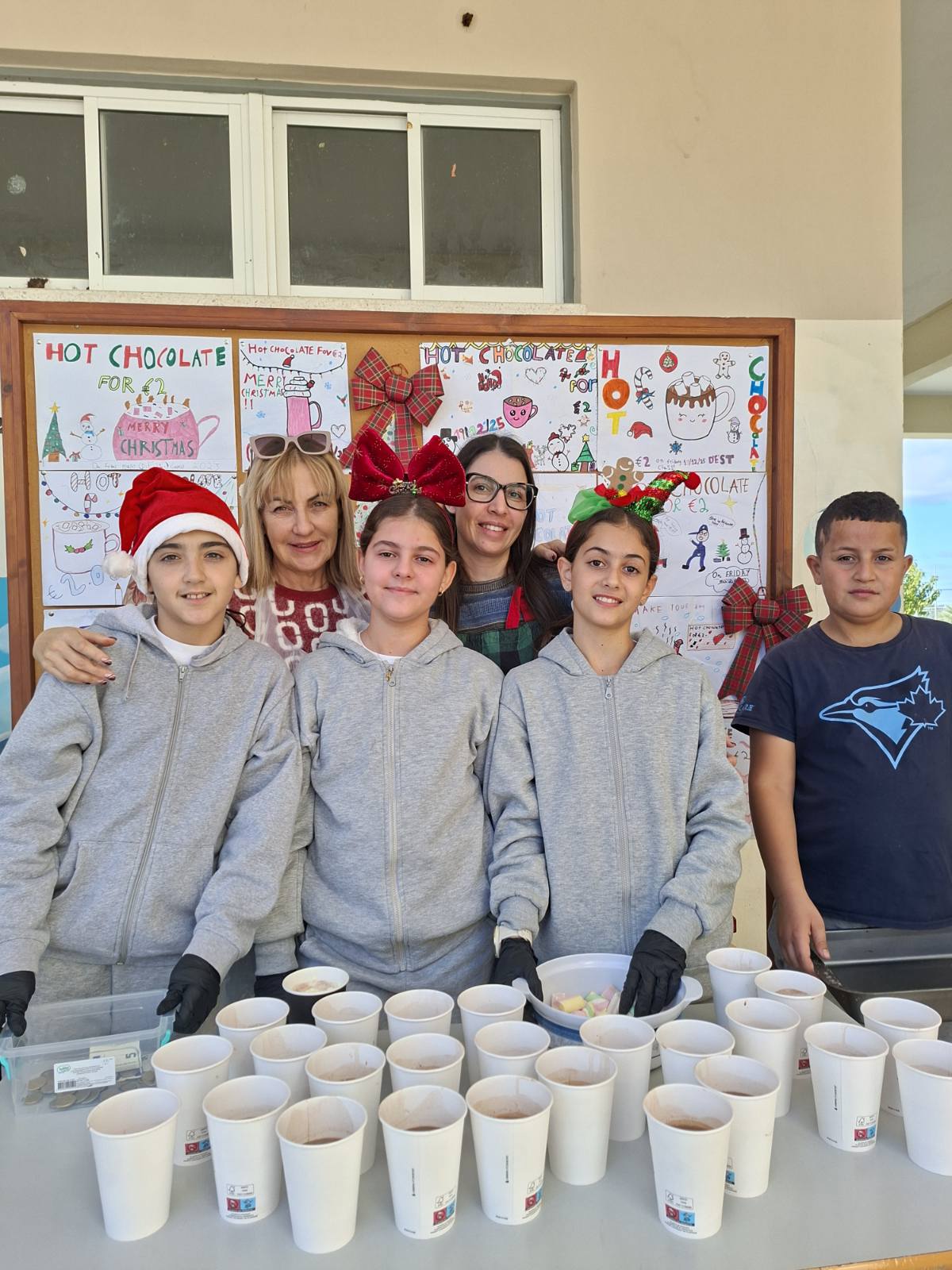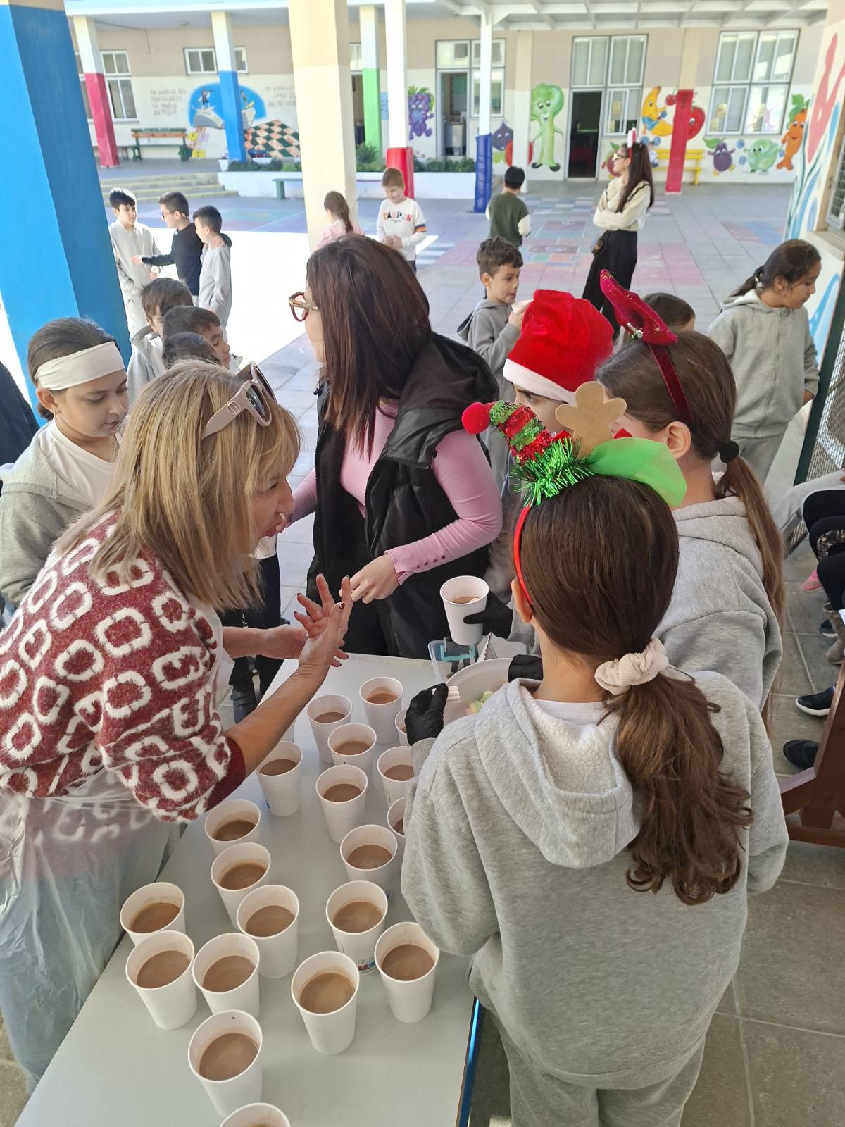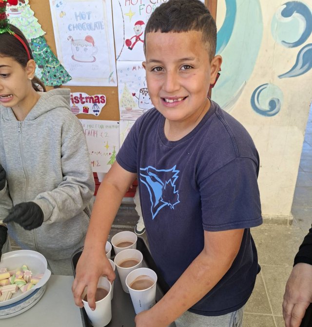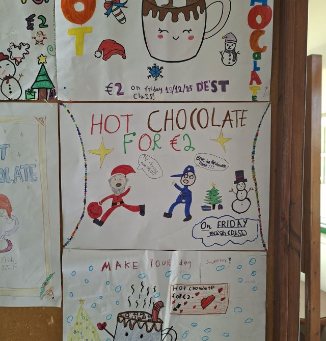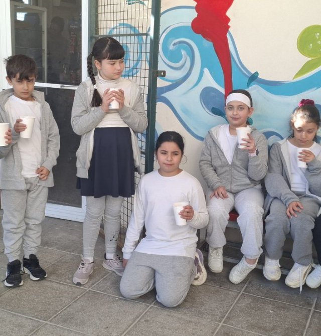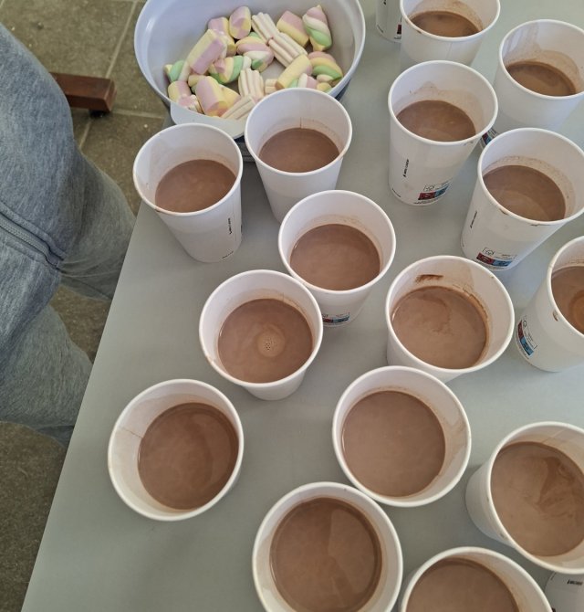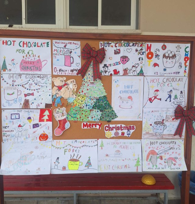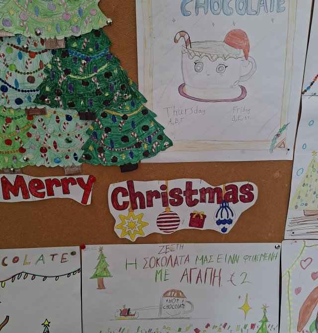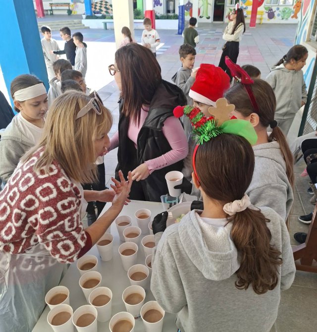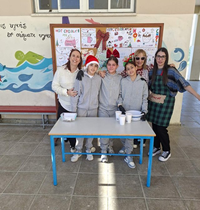 Οι εκπαιδευτικοί κα Έλενα Μούχλη και κα Μαργαρίτα Θεοδώρου (ΒΔ) με τη βοήθεια μαθητών της Στ' τάξης έφτιαξαν ζεστή σοκολάτα για όλα τα παιδιά. Επίσης, οι μαθητές της Δ τάξης στα πλαίσια του μαθήματος των Αγγλικών με την κα Μαρία Αντωνίου έφτιαξαν αφίσες για να ενημερώσουν για τη συγκεκριμένη δράση .