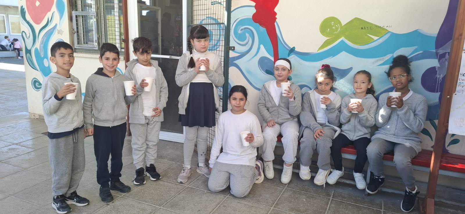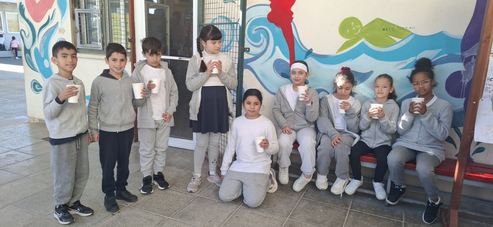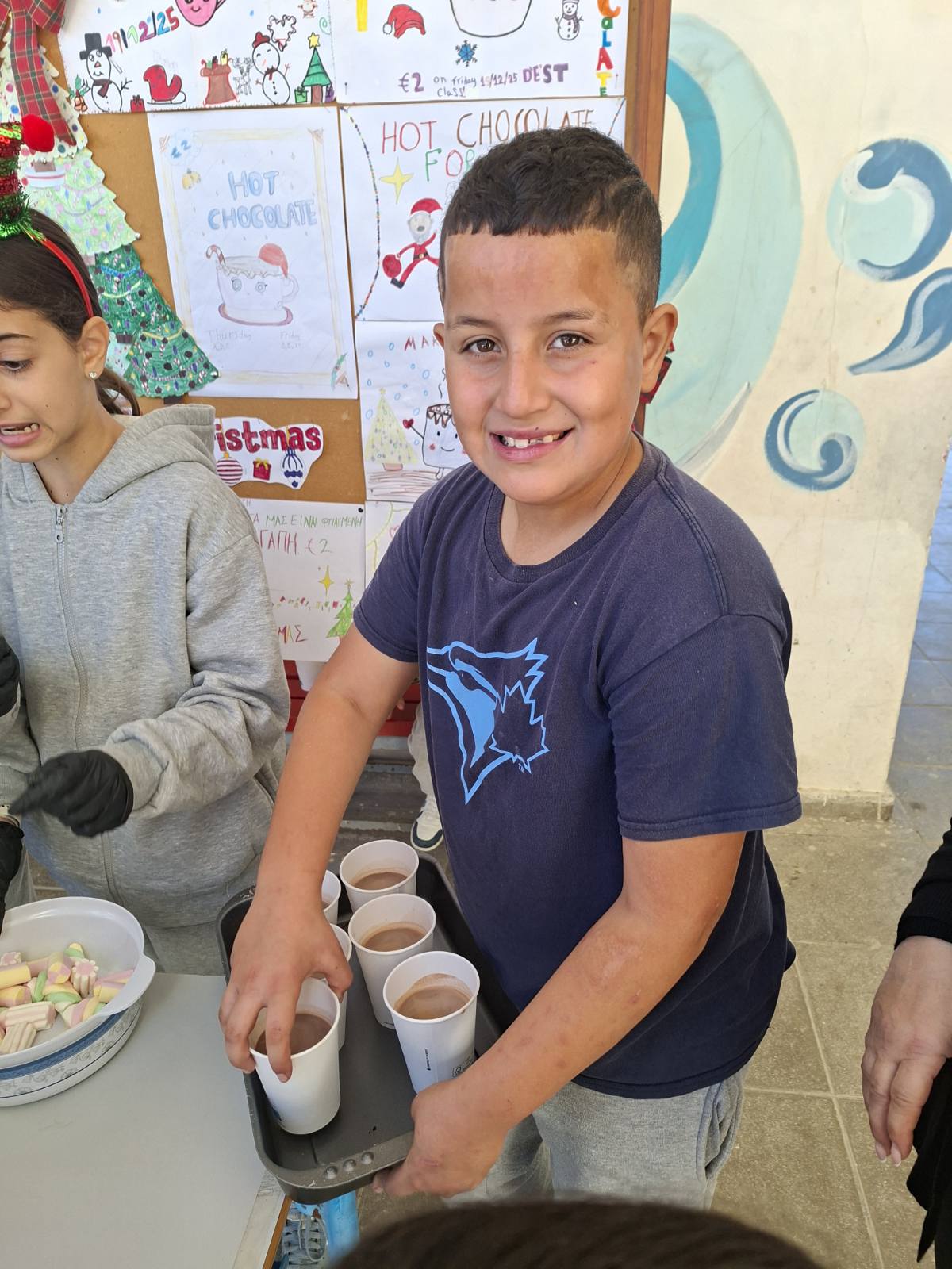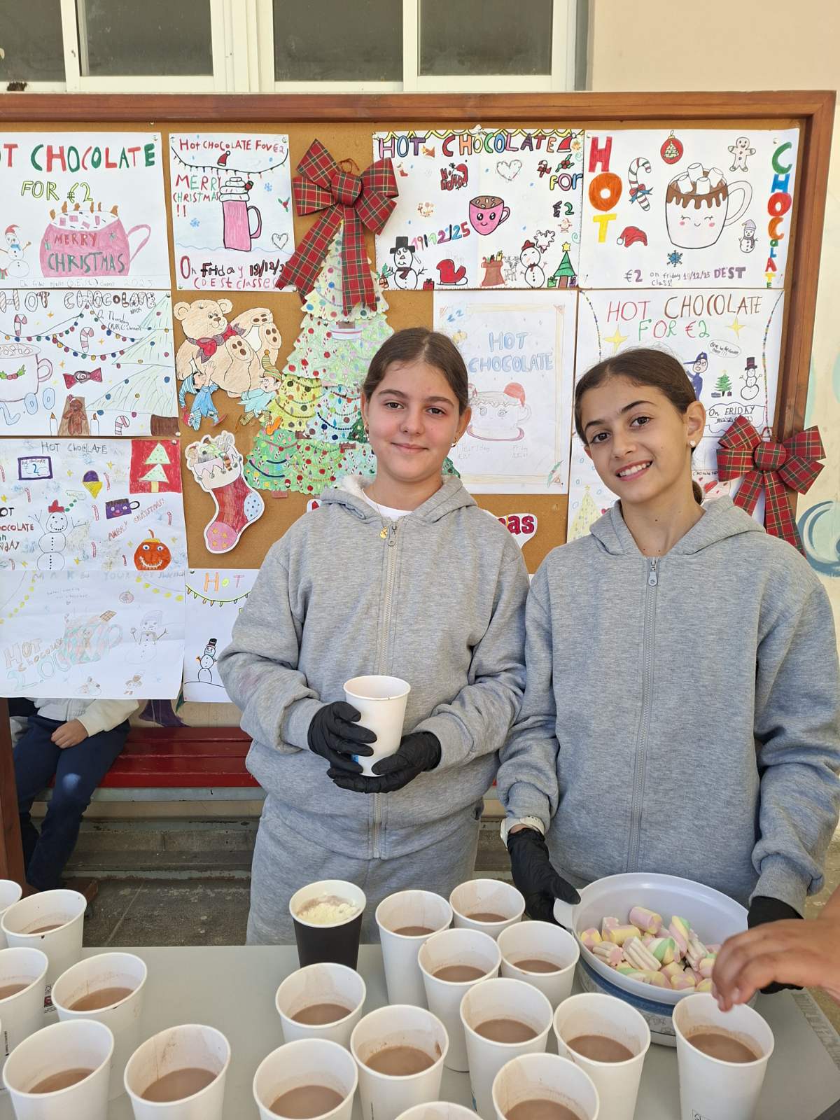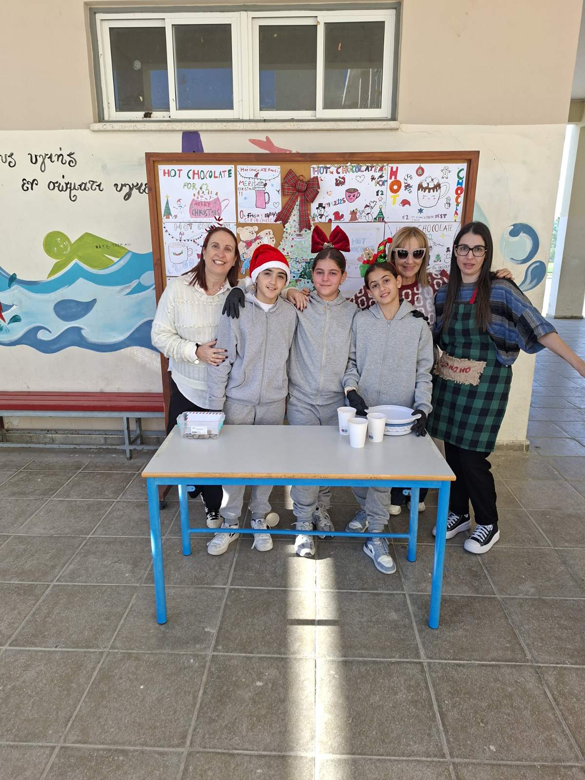 Οι εκπαιδευτικοί κα Έλενα Μούχλη και κα Μαργαρίτα Θεοδώρου (ΒΔ) με τη βοήθεια μαθητών της Στ' τάξης έφτιαξαν ζεστή σοκολάτα για όλα τα παιδιά. Επίσης, οι μαθητές της Δ τάξης στα πλαίσια του μαθήματος των Αγγλικών με την κα Μαρία Αντωνίου έφτιαξαν αφίσες για να ενημερώσουν για τη συγκεκριμένη δράση .