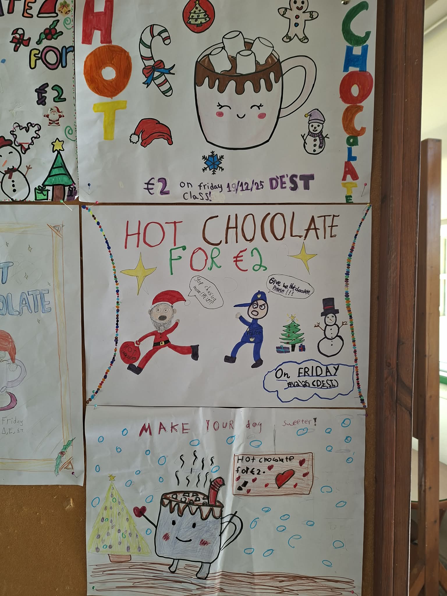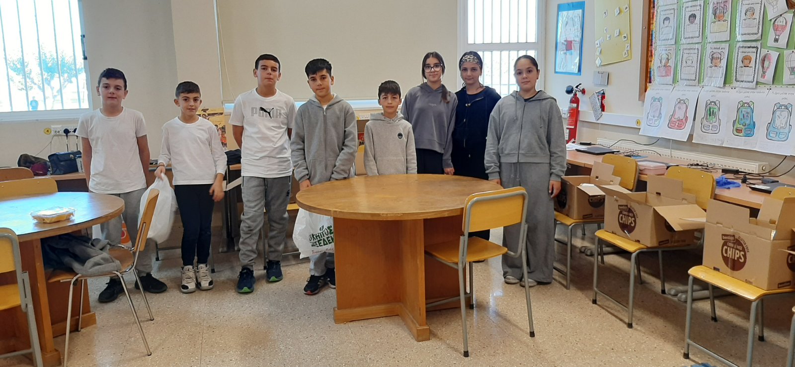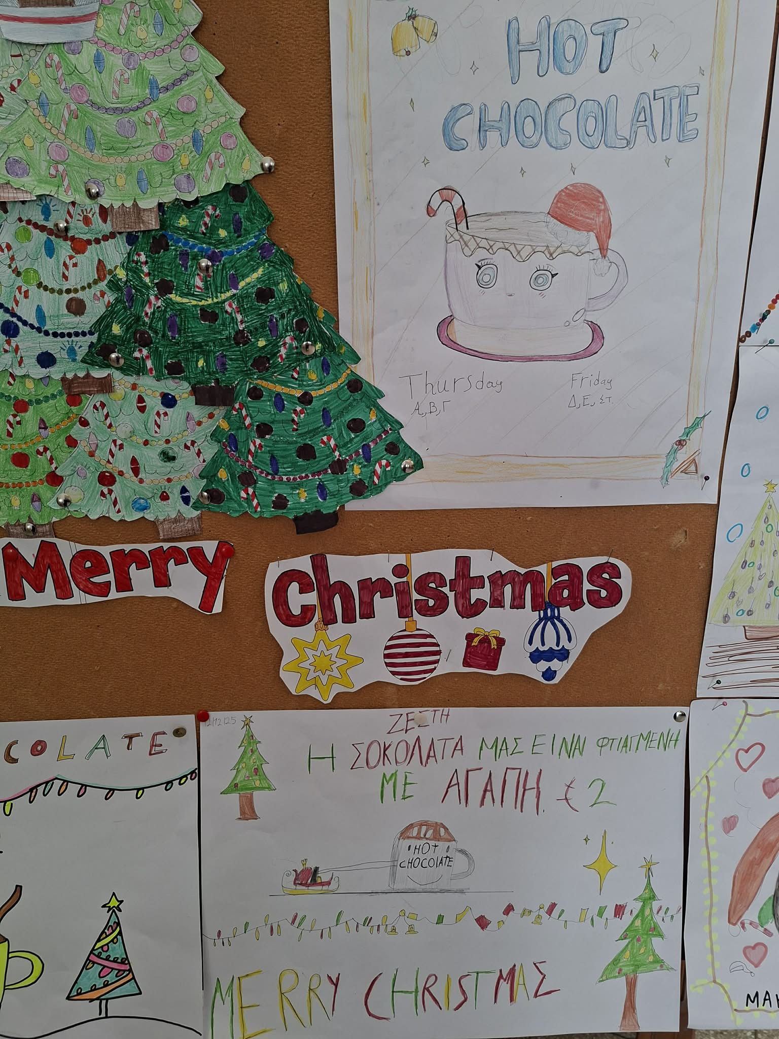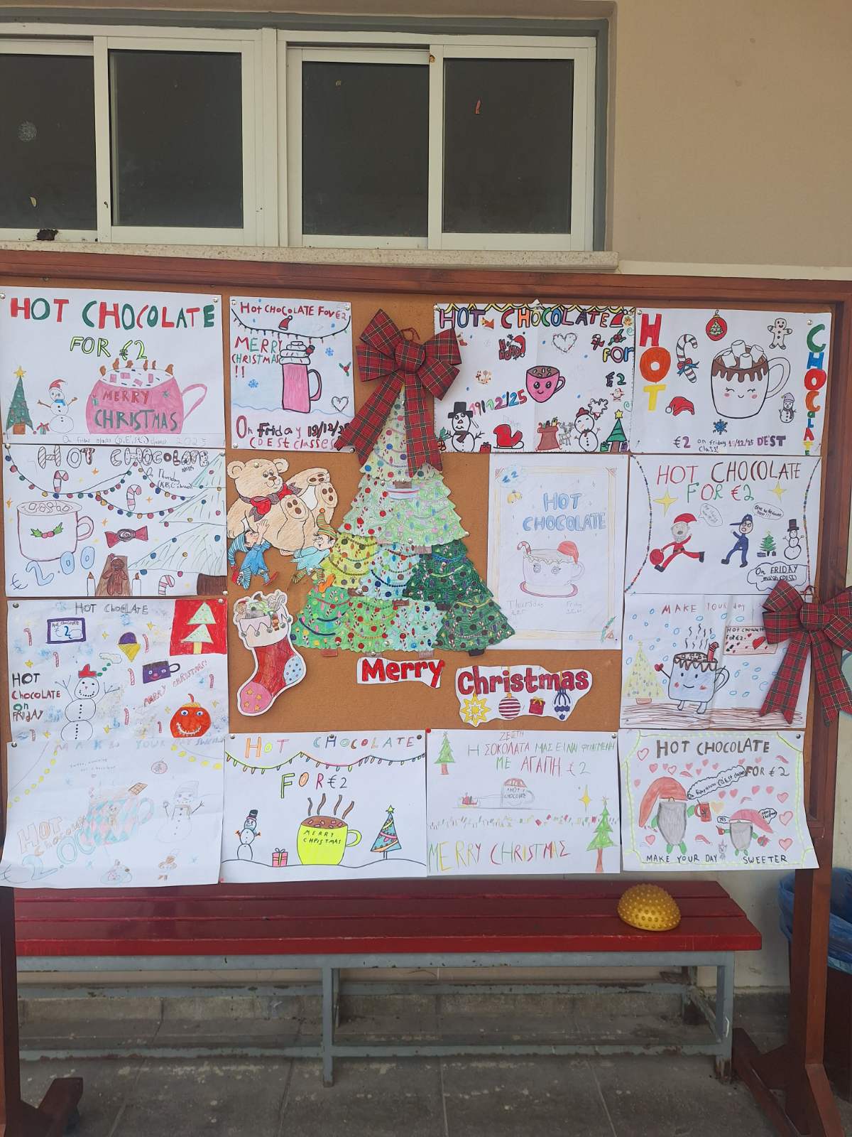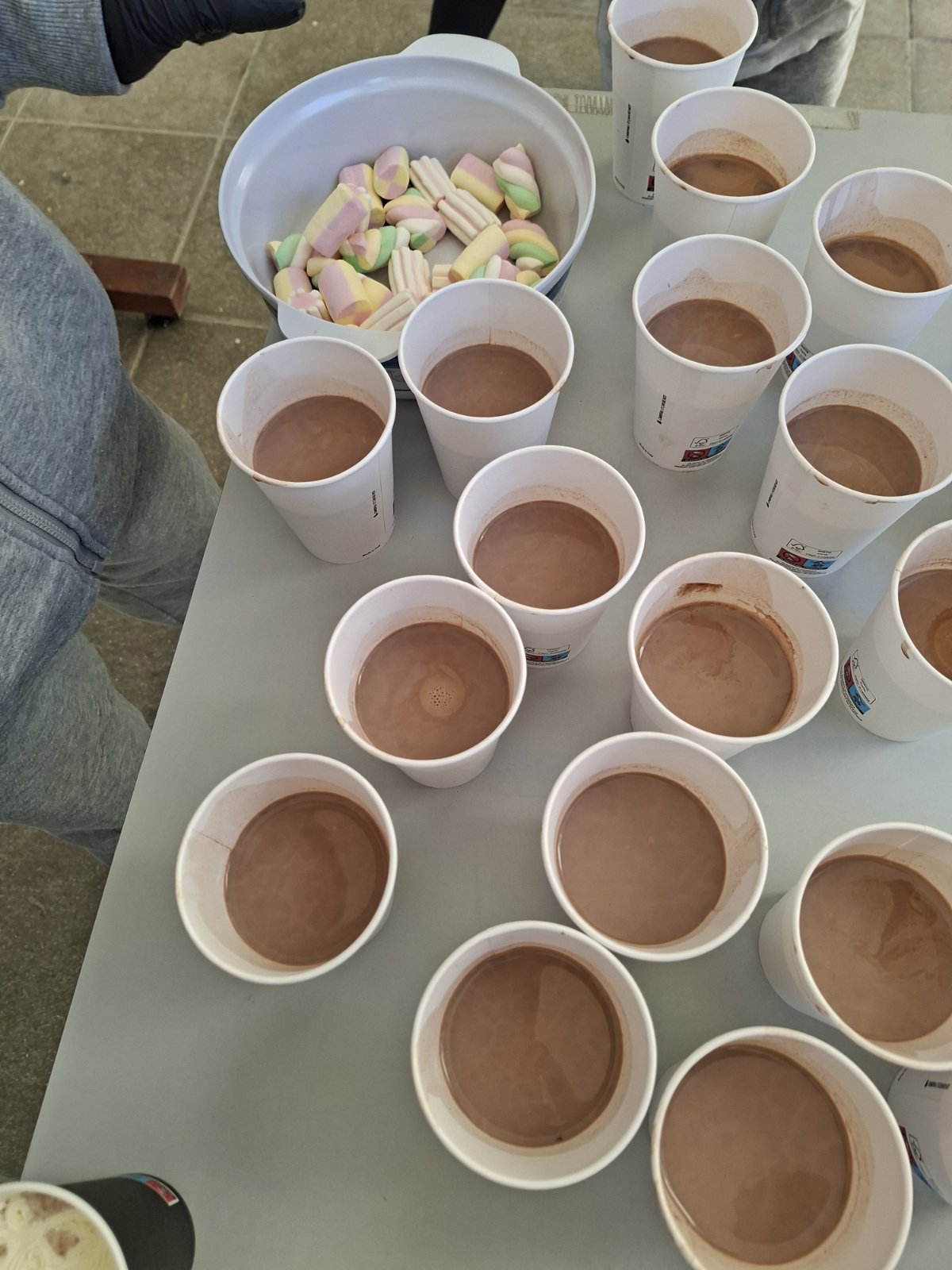 Οι εκπαιδευτικοί κα Έλενα Μούχλη και κα Μαργαρίτα Θεοδώρου (ΒΔ) με τη βοήθεια μαθητών της Στ' τάξης έφτιαξαν ζεστή σοκολάτα για όλα τα παιδιά. Επίσης, οι μαθητές της Δ τάξης στα πλαίσια του μαθήματος των Αγγλικών με την κα Μαρία Αντωνίου έφτιαξαν αφίσες για να ενημερώσουν για τη συγκεκριμένη δράση .