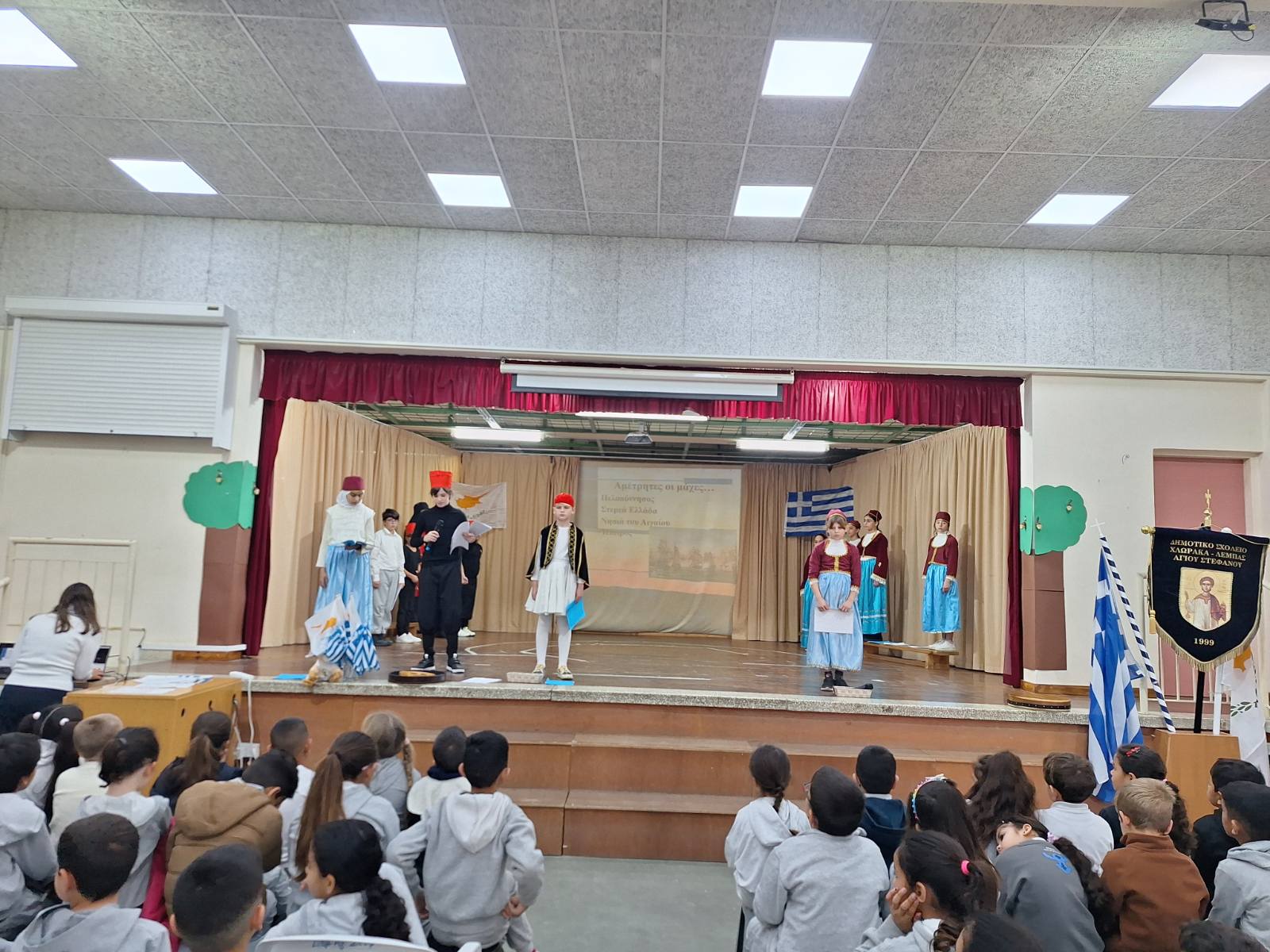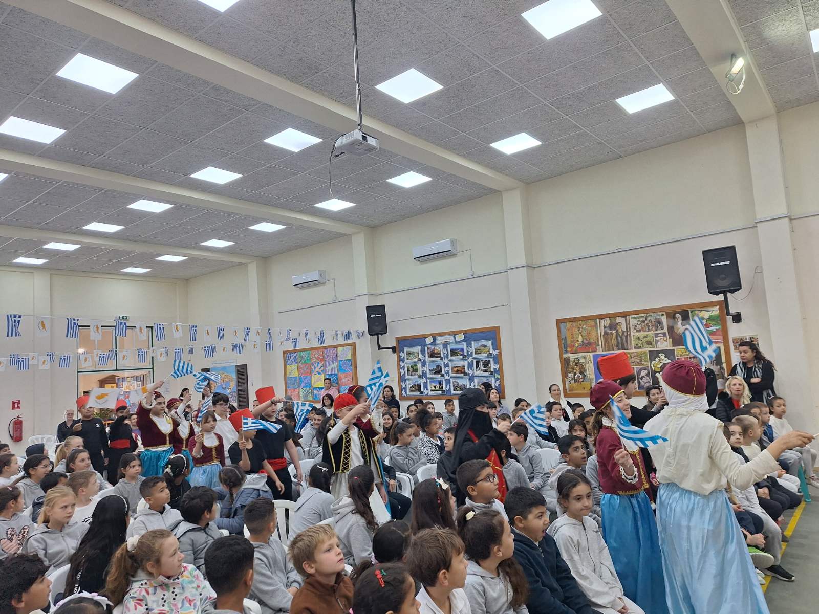 Στο σχολείο μας, ο εορτασμός της ημέρας πραγματοποιήθηκε μέσα σε κλίμα ιδιαίτερης συγκίνησης και σεβασμού. Θερμά συγχαρητήρια αξίζουν σε όλους τους συντελεστές της εκδήλωσης και ιδιαίτερα στους μαθητές και στις μαθήτριές μας για την αξιέπαινη συμμετοχή τους. Μέσα από τα δρώμενα, τα τραγούδια και τα ποιήματα αναδείχθηκαν με όμορφο και ουσιαστικό τρόπο οι διαχρονικές αξίες της ιστορίας και της παράδοσής μας.