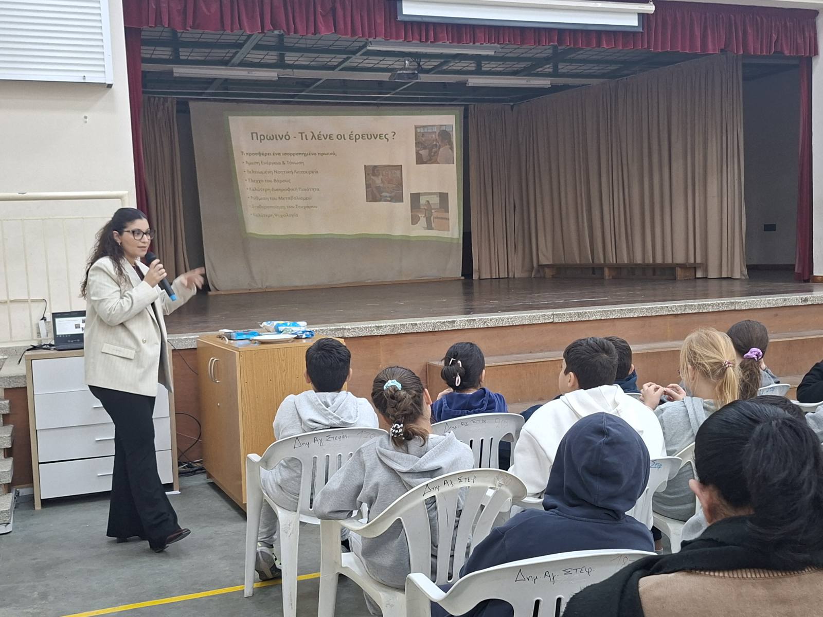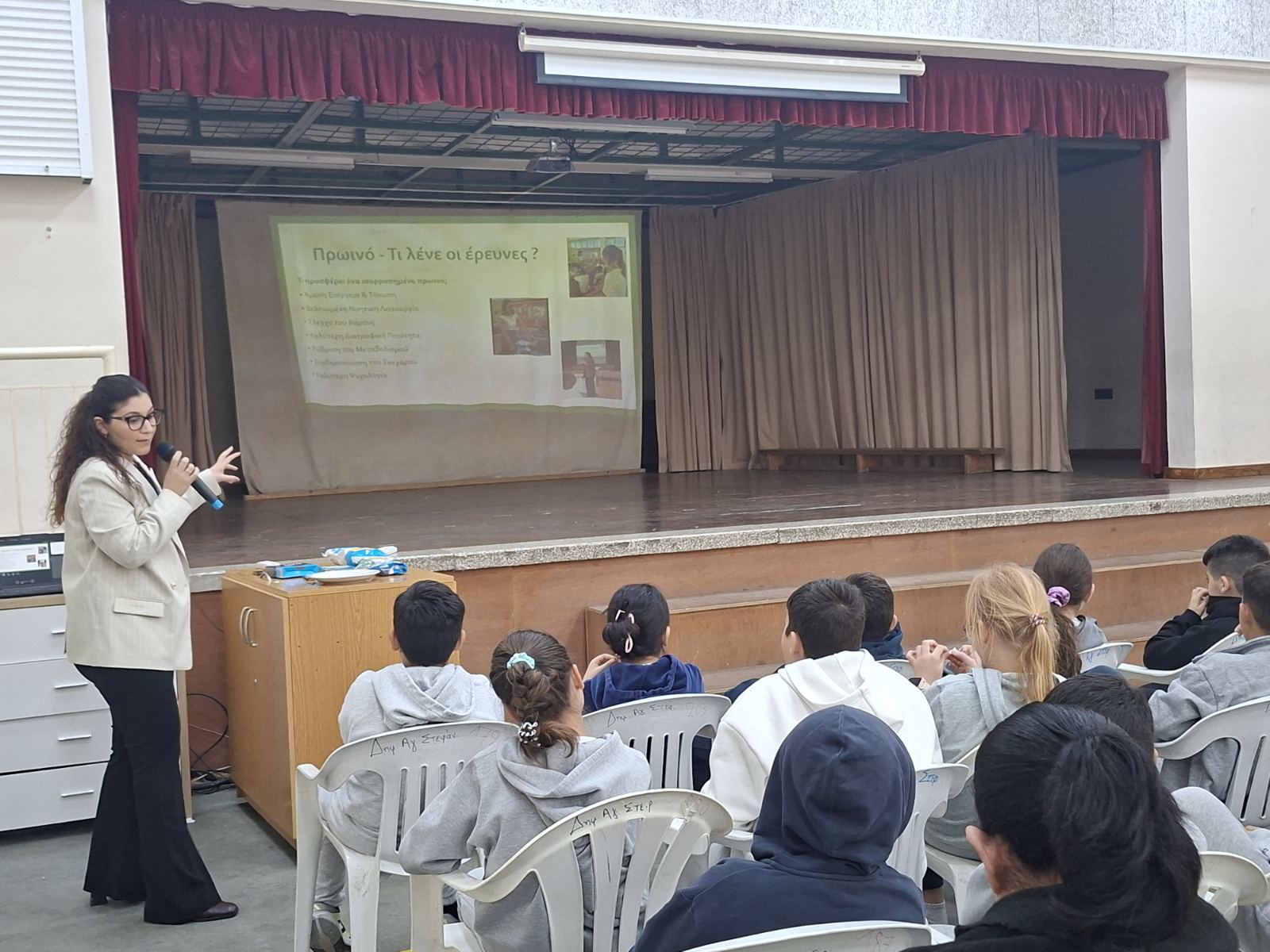 Σε συνέχεια της δράσης μας με το Υγιεινό πρόγευμα, στις 18/2/26 προσκαλέσαμε στο σχολείο μας τις διατροφολόγους κα Ιφιγένεια Κωμοδρόμου και κα Σταυρούλα Ηροδότου, οι οποίες παρουσίασαν στα παιδιά υγιεινές επιλογές όσον αφορά στη διατροφή μας. Τις ευχαριστούμε θερμά.