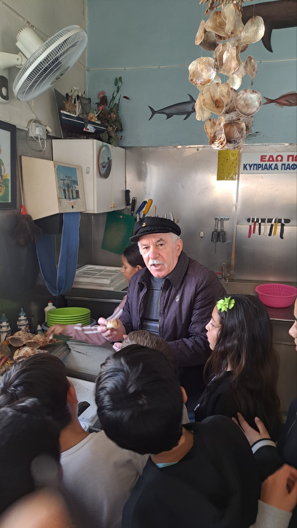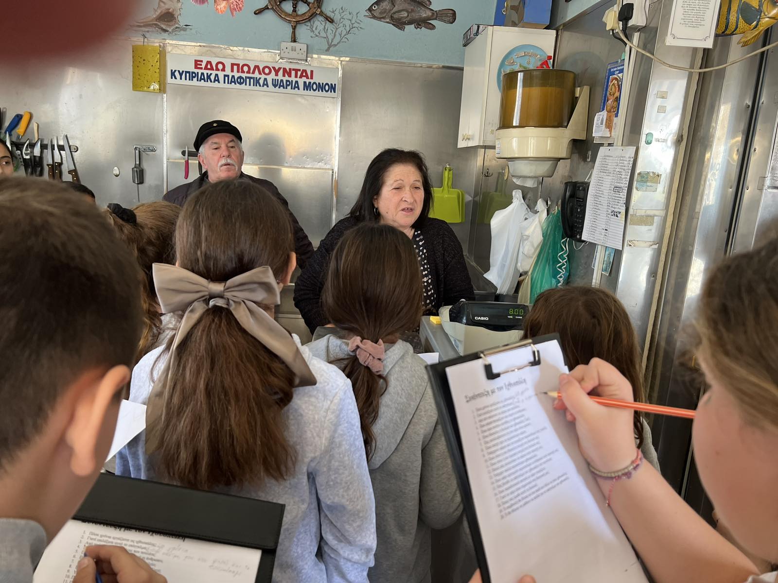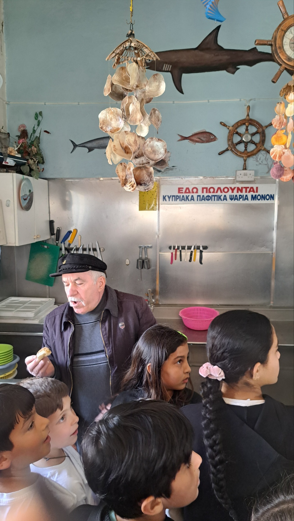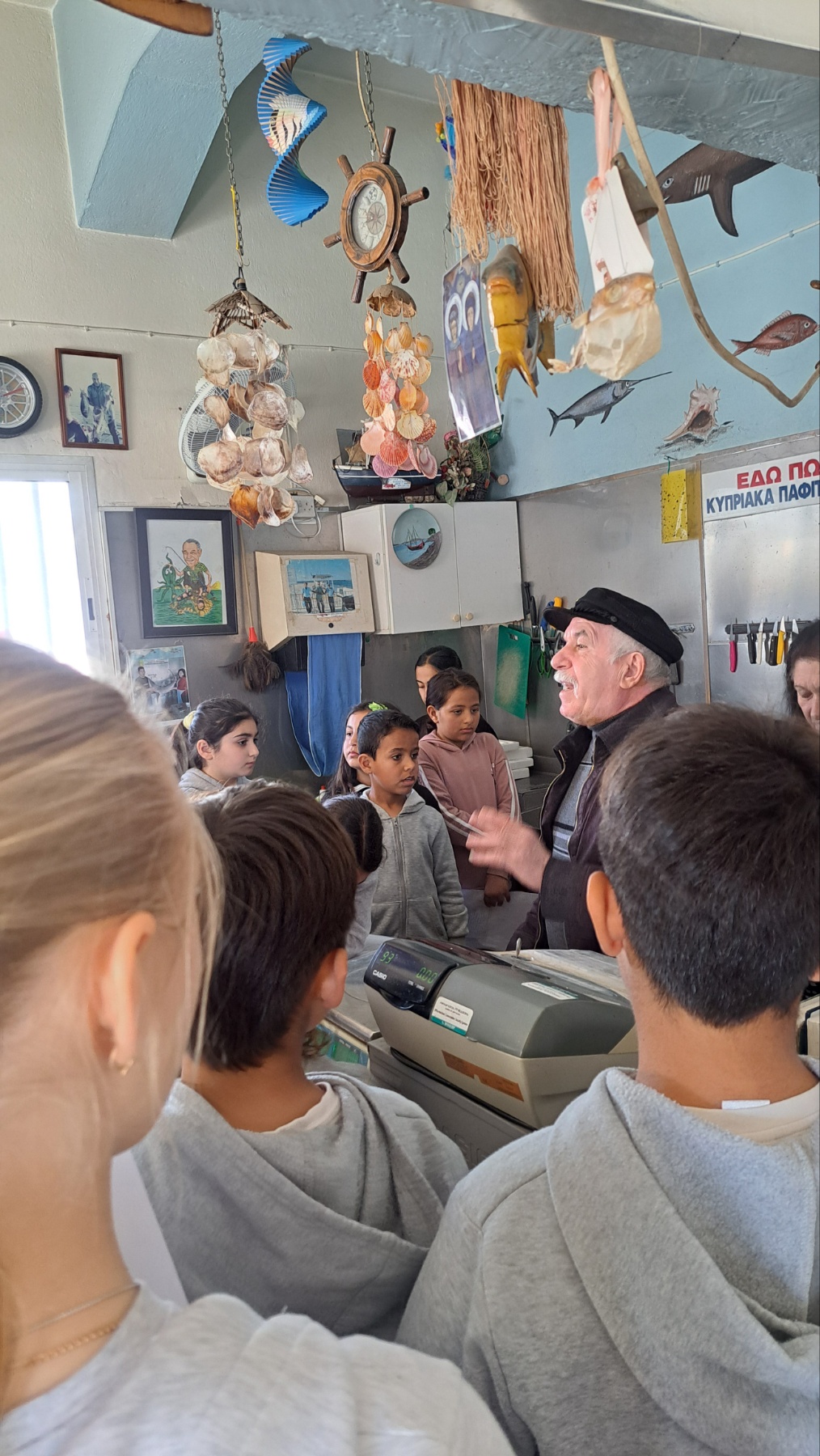 Στις 13/3/26 οι μαθητές των Δ'1 και Δ'2 τάξεων επισκέφθηκαν τη ψαραγορά "Άγιος Νικόλαος" όπου και ξεναγήθηκαν από τον ιδιοκτήτη κο Κ. Λεωνίδα ο οποίος έδωσε συνέντευξη στα παιδιά. Η εκπαιδευτική επίσκεψη πραγματοποιήθηκε στο πλαίσιο της γνωριμίας των μαθητών με τον τοπικό πολιτισμό και την παράδοση. Οι μαθητές είχαν την ευκαιρία να γνωρίσουν από κοντά το παραδοσιακό επάγγελμα του ψαρά,να μάθουν για τα διαφορετικά θαλασσινά είδη, να ενημερωθούν για τη διαδικασία αλιείας και διάθεσης των ψαριών και να κατανοήσουν τη σημασία της θάλασσας για την οικονομία και την καθημερινή ζωή της τοπικής κοινωνίας. Η δράση στοχεύει στην ανάπτυξη σεβασμού προς τα παραδοσιακά επαγγέλματα και την πολιτιστική κληρονομιά του τόπου.