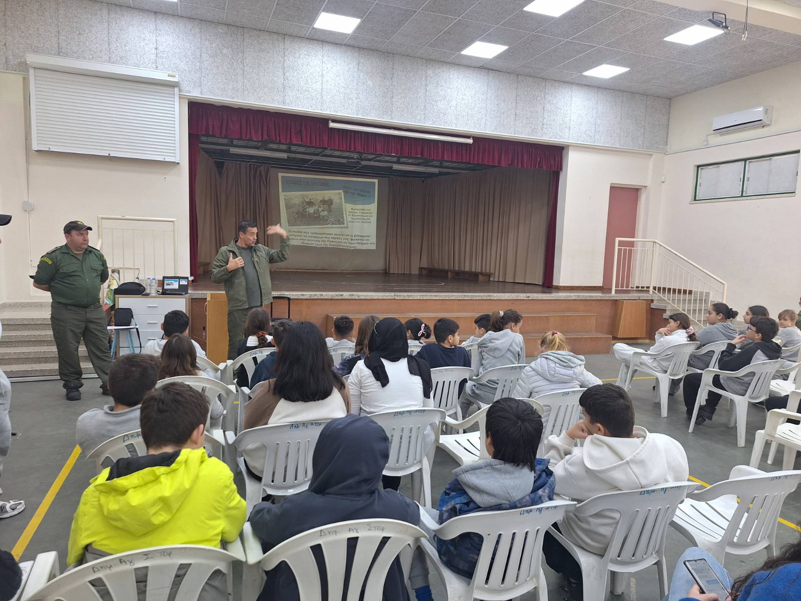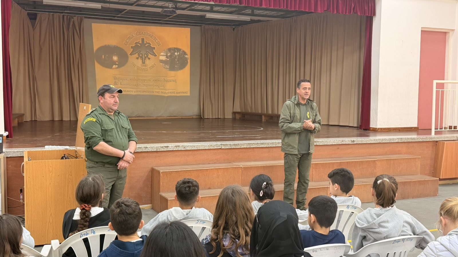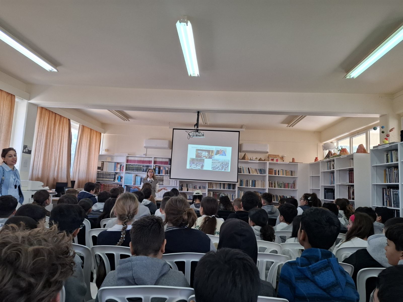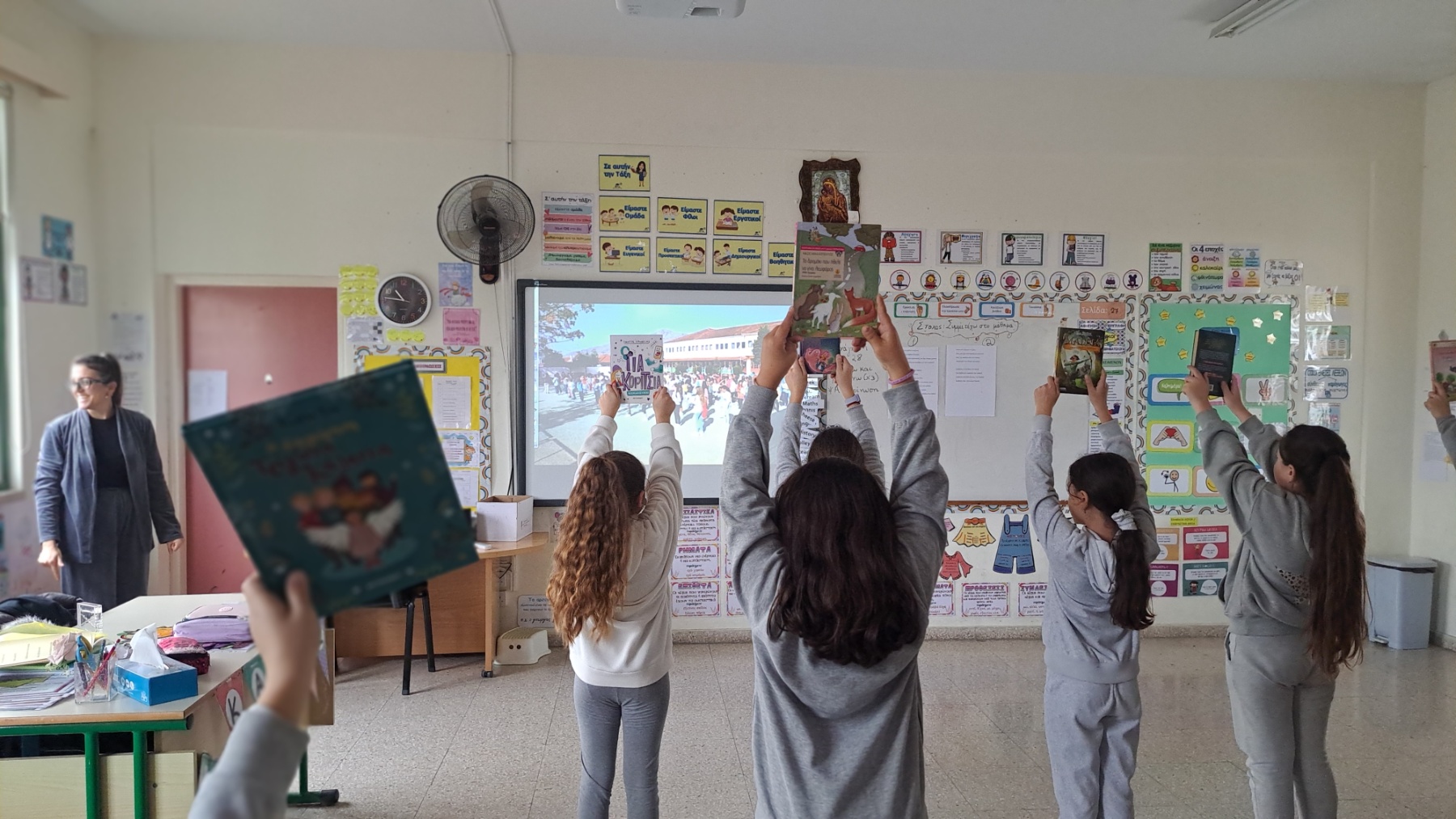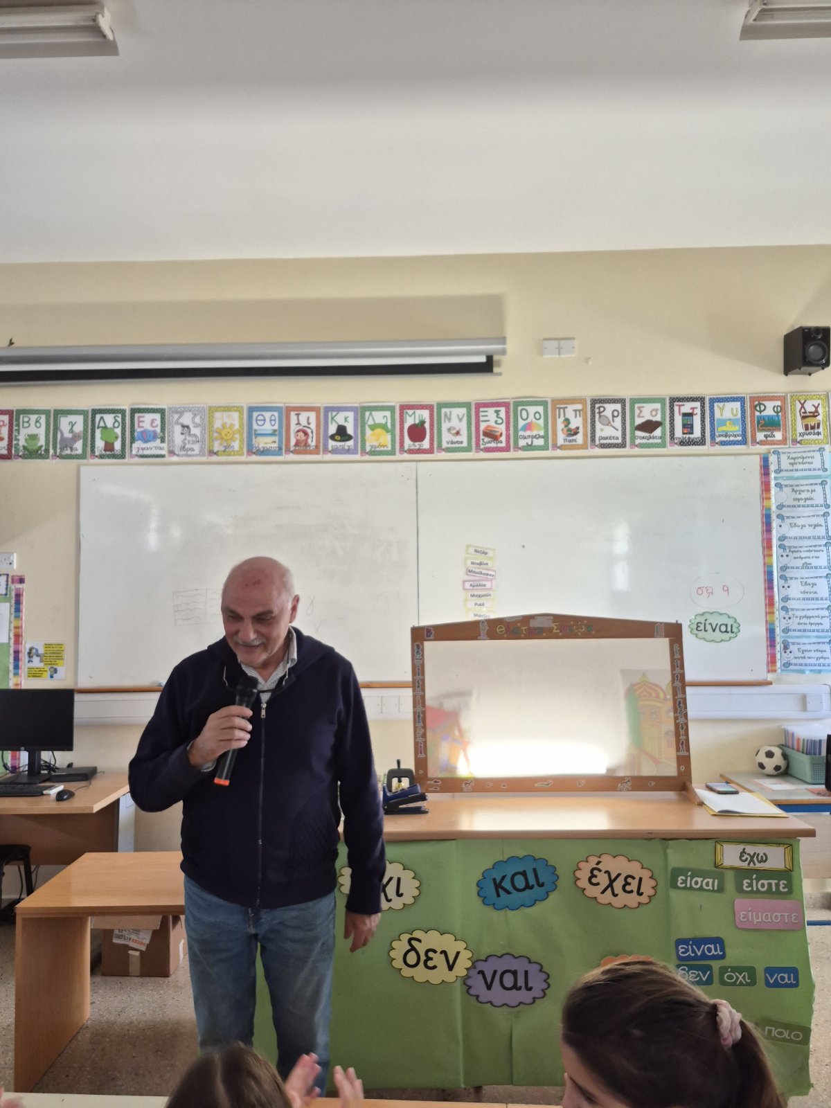 Η κα Μαρία Χατζηκυριάκου και η κα Κούλα Χατζηκυριάκου μίλησαν στους μαθητές για το κατεχόμενο χωριό τους, τον Άγιο Αμβρόσιο Κερύνειας στις 12/11/25. Μέσα από την διήγηση της κας Μαρούλας και της κας Κούλας τα παιδιά ταξίδεψαν σε ένα νοερό ταξίδι στον χρόνο γεμάτο αναμνήσεις από το γραφικό χωριό της Κερύνειας, την τραγικότητα του πολέμου και την προσφυγιά. Επίσης, η κα Κούλα Χατζηκυριάκου απήγγειλε ποιήματα για το χωριό τους και στο τέλος τα παιδιά διατύπωσαν απορίες για την προσφυγιά, την εισβολή και τα κατεχόμενα μέρη μας