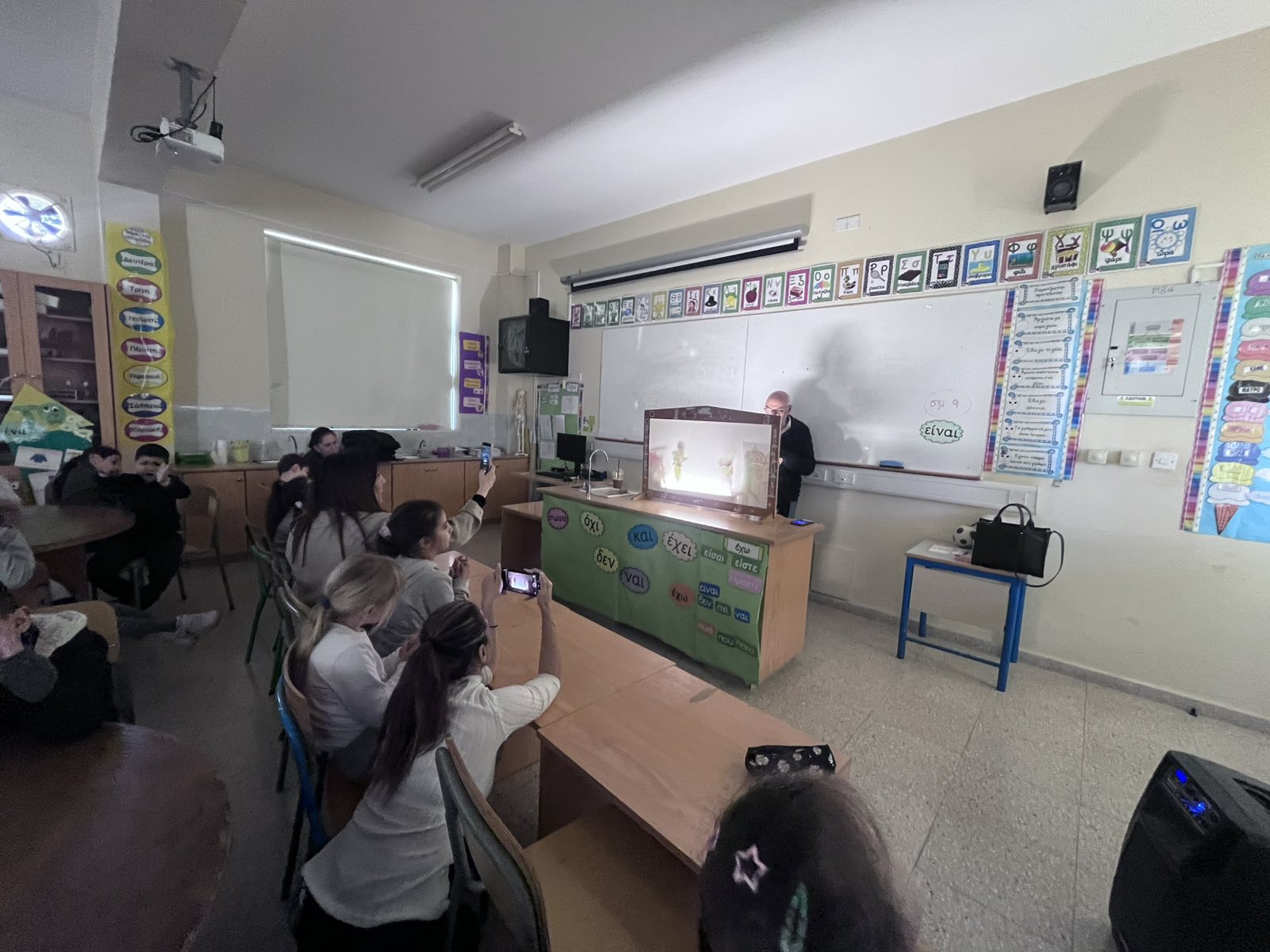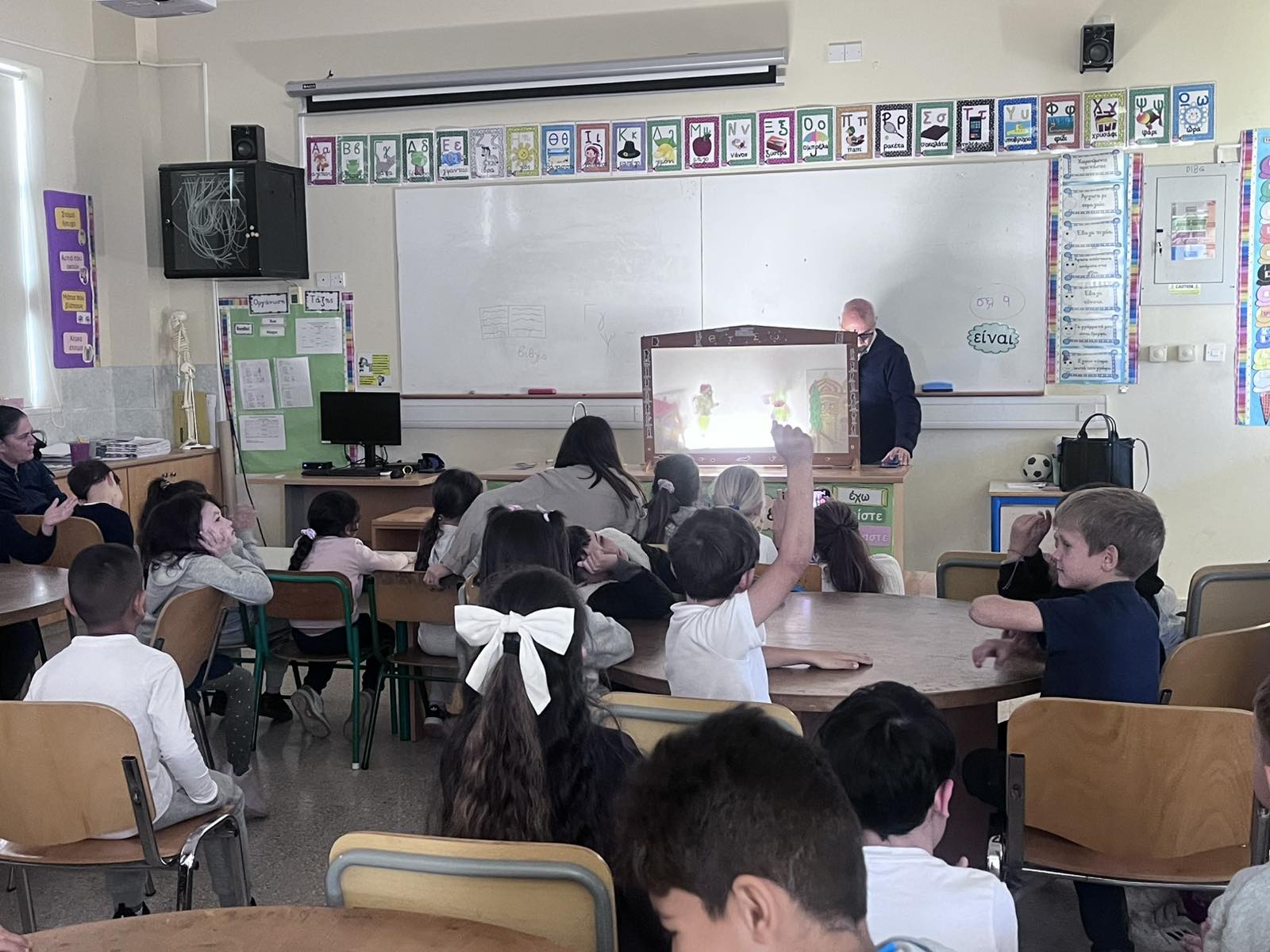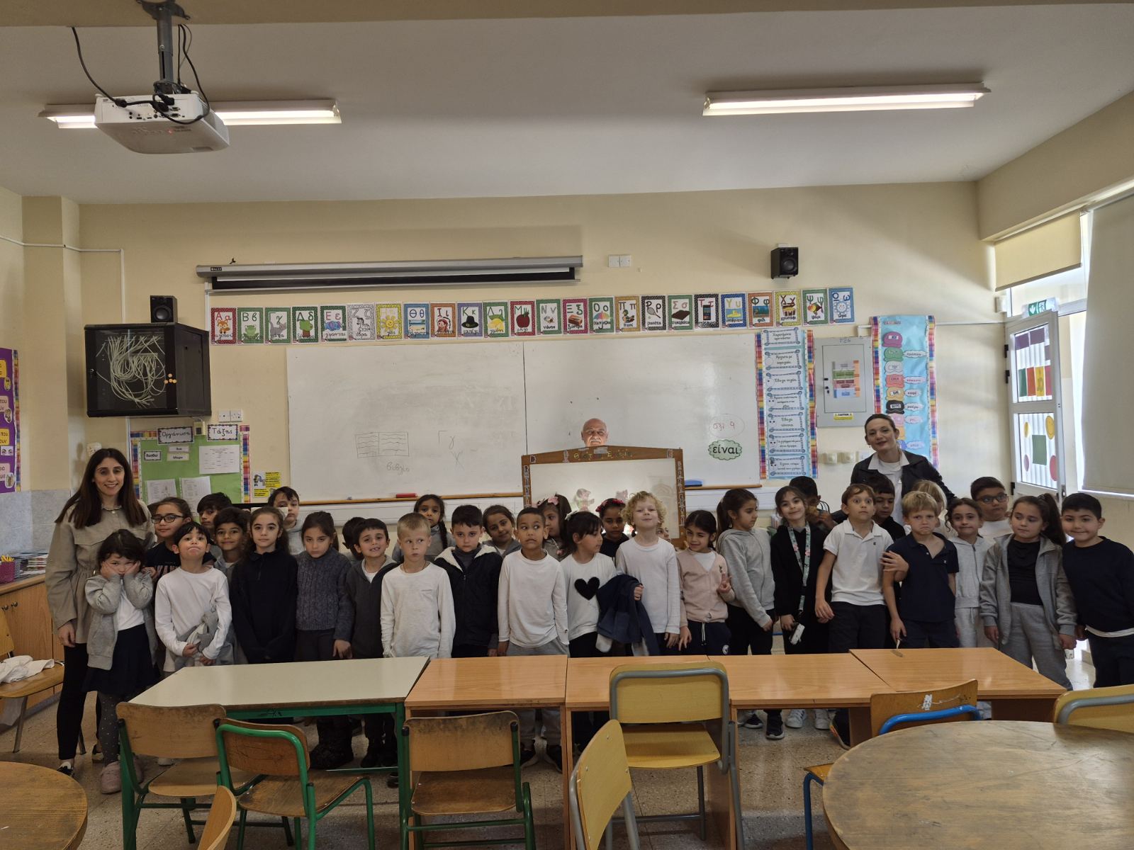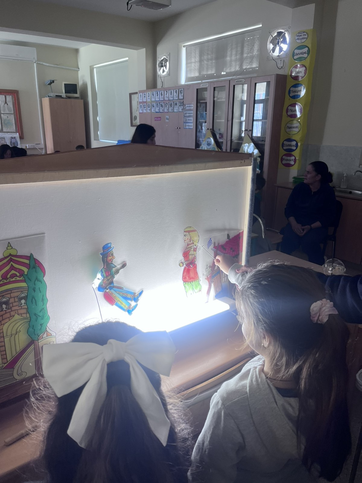 Στις 27/3/26 στο σχολείο μας πραγματοποιήθηκε επίσκεψη του καραγκιοζοπαίχτη κ. Γιάννη Πάφιου, προσφέροντας στα παιδιά των Α' τάξεων μια μοναδική ευκαιρία γνωριμίας με το παραδοσιακό θέατρο σκιών. Μέσα από την παρουσίαση, οι μαθητές ήρθαν σε επαφή με τον κόσμο του Καραγκιόζη, γνώρισαν τις χαρακτηριστικές φιγούρες και τον τρόπο χειρισμού τους, καθώς και τα βασικά στοιχεία που συνθέτουν μια παράσταση. Η εμπειρία ήταν ιδιαίτερα διαδραστική και ευχάριστη, ενισχύοντας τη φαντασία και τη δημιουργικότητα των παιδιών, ενώ παράλληλα τους έφερε πιο κοντά σε ένα σημαντικό κομμάτι της πολιτιστικής μας παράδοσης.