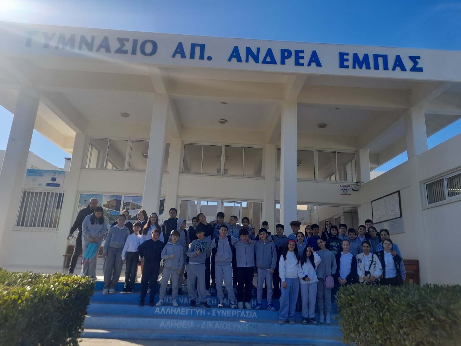 Στα πλαίσια του προγράμματος Ομαλής Μετάβασης οι μαθητές της Στ' τάξης επισκέφθηκαν στις 11/3/26 το Γυμνάσιο Αποστόλου Ανδρέα Έμπας όπου και ενημερώθηκαν για τον τρόπο λειτουργίας του σχολείου, ξεναγήθηκαν στους χώρους του και παρακολούθησαν μαθήματα. Ευχαριστούμε το προσωπικό του γυμνασίου για την ενημέρωση και τη φιλοξενία.