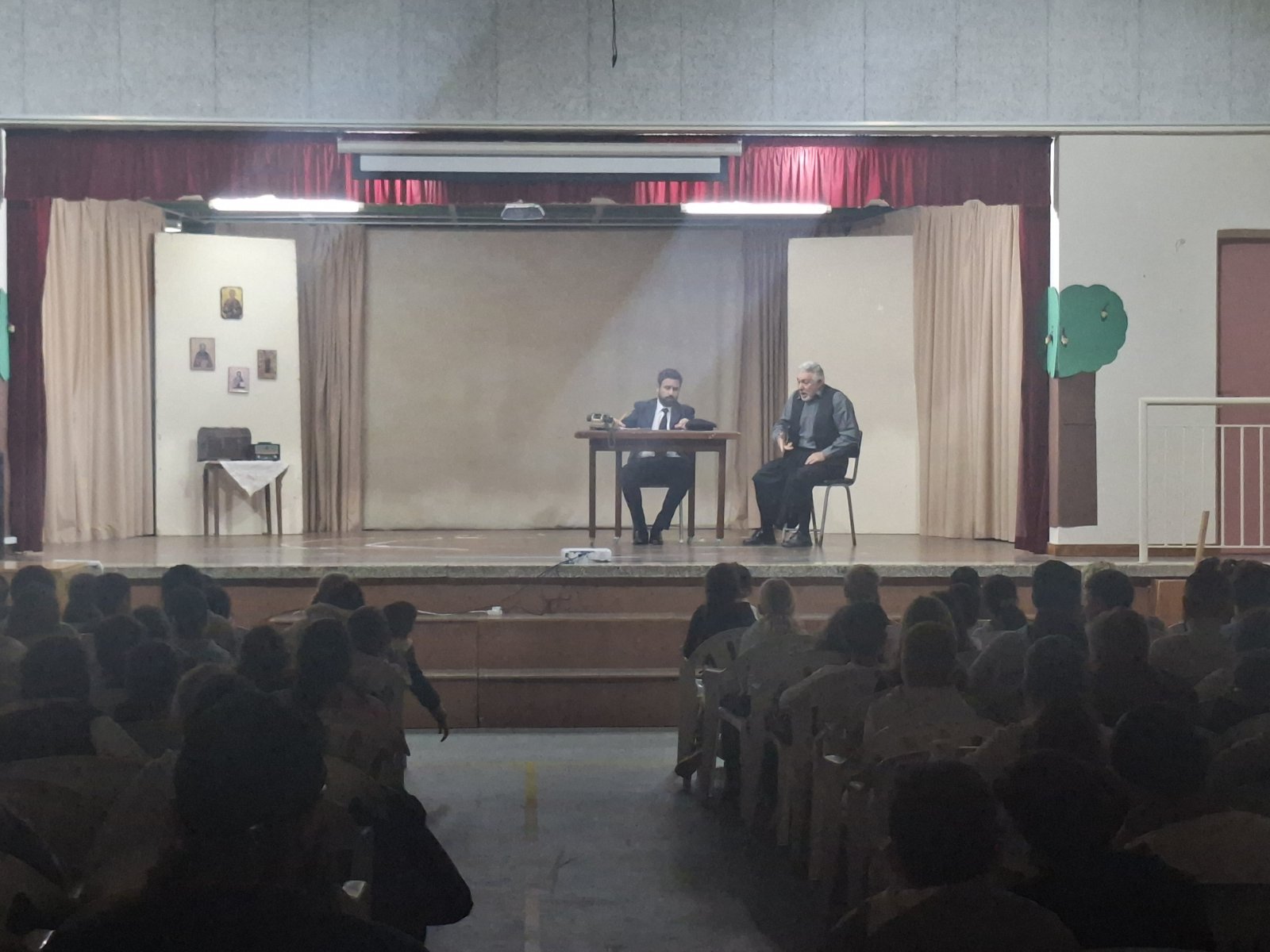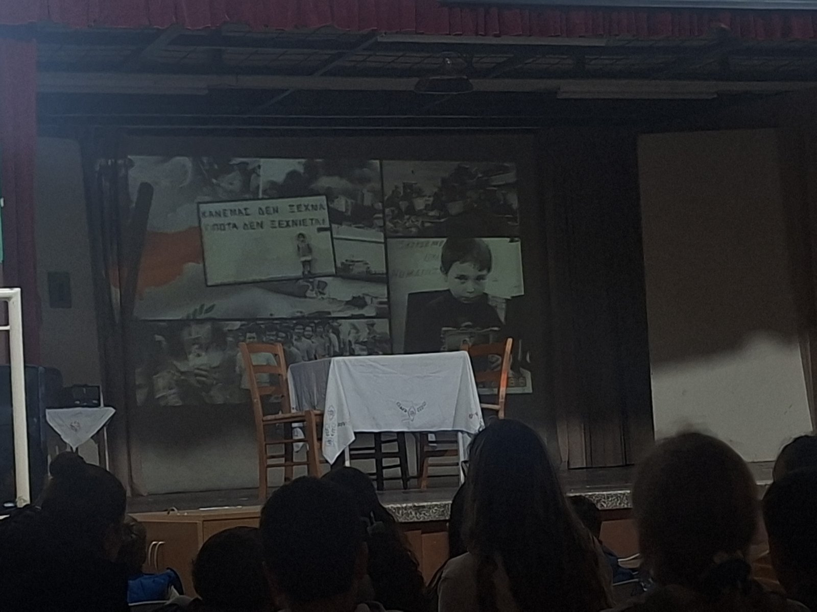 Tην Παρασκευή 20/3/26, οι μαθητές και οι μαθήτριές μας είχαν την ευκαιρία να παρακολουθήσουν τη θεατρική παράσταση του Γιώργου Θεοδοσίου «Ελεύθερες ψυχές», από τη θεατρική ομάδα «Παρασκήνιο». Η παράσταση ήταν αφιερωμένη στη δασκάλα Ελένη Φωκά, η οποία για είκοσι τρία (23) ολόκληρα χρόνια προσέφερε μόρφωση, στήριξη και κουράγιο στα εγκλωβισμένα Κυπριόπουλα της Καρπασίας.