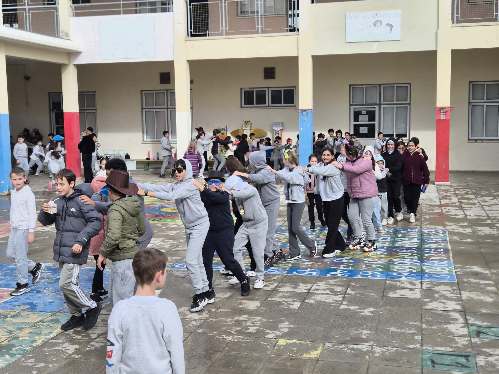 Την Τσικνοπέμπτη 12/2/26 το σχολείο μας γέμισε χαμόγελα, μουσικές και μυρωδιές από παραδοσιακά εδέσματα. Από νωρίς το πρωί η αυλή στολίστηκε αποκριάτικα και οι μαθητές συμμετείχαν με ενθουσιασμό σε παραδοσιακά παιχνίδια, όπως σακουλοδρομίες, πατατοδρομίες, αυκά αυκά πουλώ τα, μαντηλάκι, πέτρα-ψαλίδι-χαρτί κτλ, ενώ ακούγονταν χαρούμενα τραγούδια και γέλια παντού. Επίσης όλοι δοκίμασαν νόστιμα φαγητά και λουκουμάδες που είχαν προσφερθεί από τον Σύνδεσμο Γονέων και Κηδεμόνων, κρατώντας ζωντανό το έθιμο της ημέρας. Ήταν μια ξεχωριστή γιορτή που έφερε κοντά μαθητές και εκπαιδευτικούς, γεμάτη παράδοση, συνεργασία και αποκριάτικο κέφι.